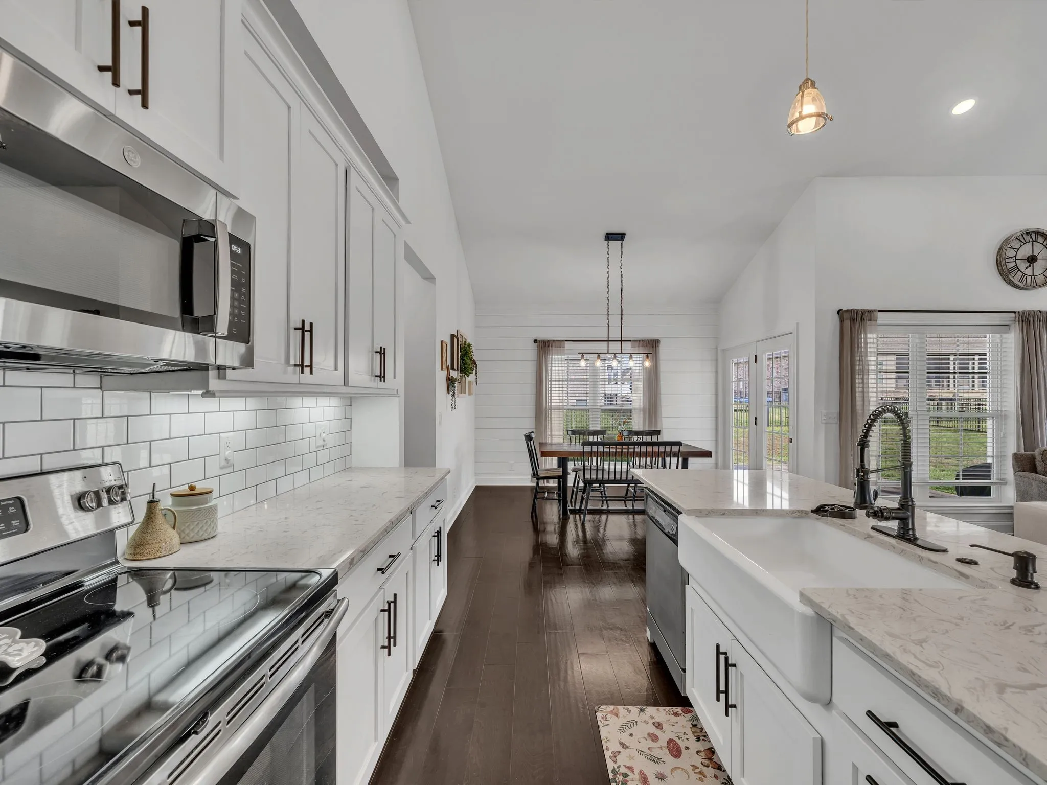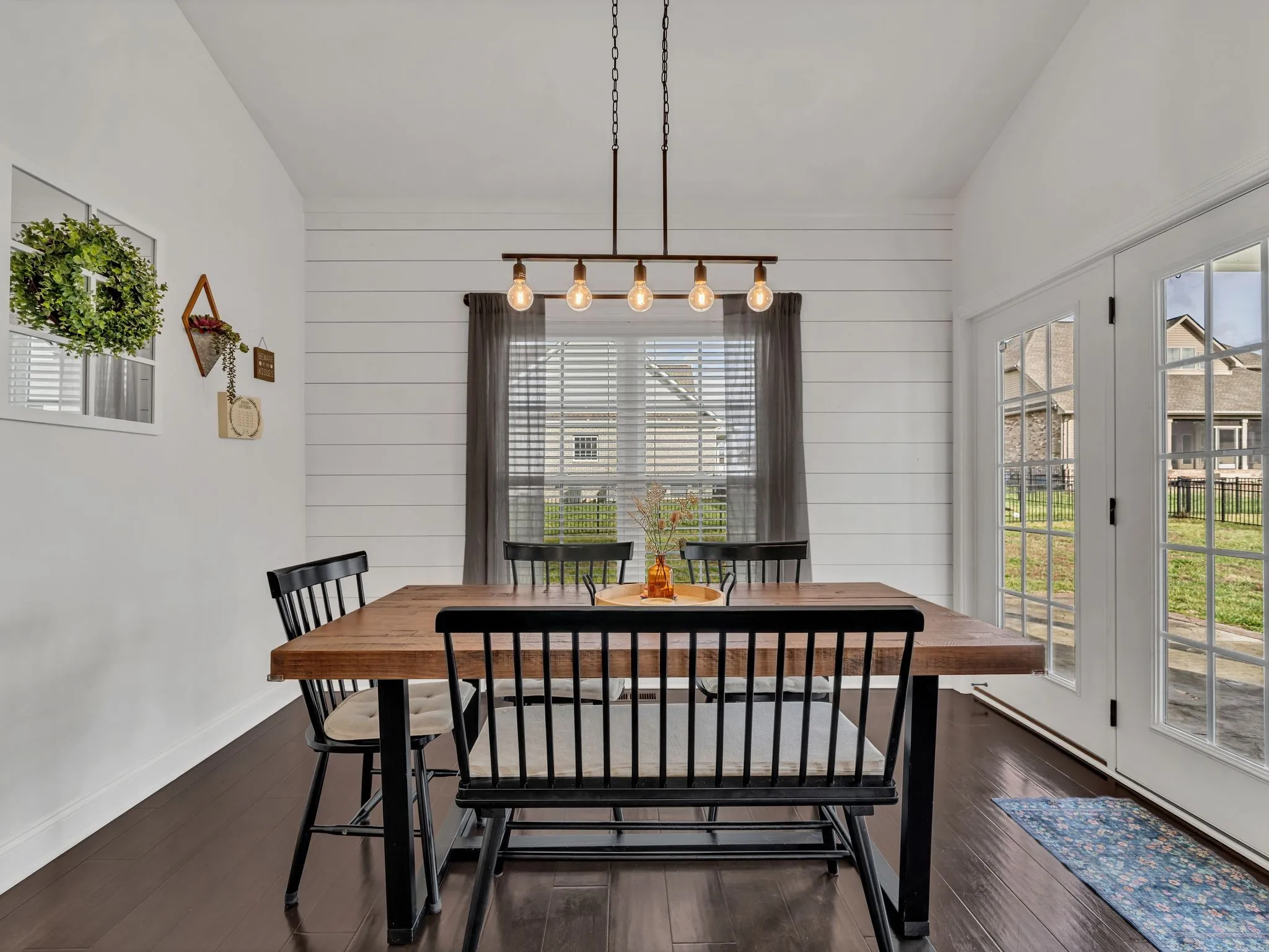 This stunning modern home welcomes you with a charming rocking chair front porch and an open, light-filled interior. Soaring ceilings, beautiful flooring, custom trim work, shiplap accents, and an abundance of windows create a warm yet stylish atmosphere. The white kitchen features stainless steel appliances, a farmhouse sink, pantry, and generous island with extra seating—perfect for everyday living and entertaining. Open-concept living areas center around a cozy fireplace. The spacious main-level primary suite offers high ceilings, a walk-in closet with built-in shelving, and a spa-like bath with double sinks, a separate shower, and a soaking tub. Upstairs, you’ll find spacious secondary bedrooms and a large bonus room ideal for a media room, playroom, gaming room.or teen hangout. Step outside to enjoy a fenced, level yard with both patio and covered patio spaces—perfect for relaxing or entertaining. Crawlspace is encapsulated. Conveniently located near shopping, dining, parks, and I-24 access, with excellent neighborhood amenities to enjoy. 1% lender credit with use of preferred lender.