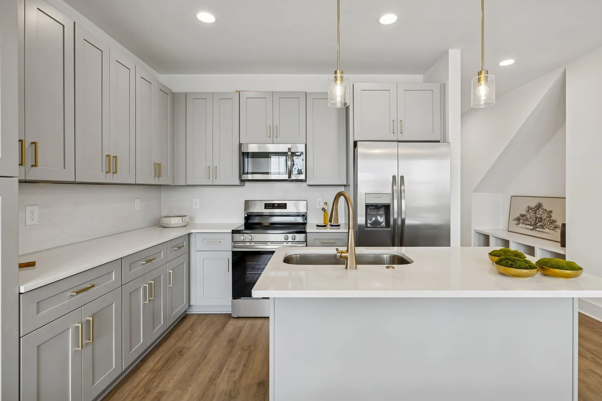 Welcome home to modern luxury and effortless living in this brand-new townhome in Lebanon, TN. Designed with both style and function in mind, this 3-bedroom, 2.5-bath residence showcases upscale finishes throughout, including quartz countertops, elegant gold accents, and Energy Star stainless steel kitchen appliances. The chef-inspired kitchen features soft-close cabinets and drawers and a spacious center island, perfect for entertaining or everyday living. The open-concept first floor is highlighted by gorgeous luxury vinyl plank flooring and a convenient built-in drop zone, adding both beauty and organization. Upstairs, the primary suite is a true retreat with two closets and a spa-like ensuite boasting a large walk-in tile shower with frameless glass door and a double vanity. This home is thoughtfully equipped with today’s must-have SMART features, including a SMART hub and app, video doorbell, and SMART thermostat, offering comfort, security, and efficiency at your fingertips. Located in the heart of Lebanon, residents enjoy a charming, historic town square filled with great dining, local boutiques, and year-round community events. Commuters will love the easy access to the commuter rail to downtown Nashville. Lebanon is also home to the renowned Wilson County Fairgrounds and Expo Center, hosting world-class events and entertainment. This growing, vibrant community offers all the conveniences of modern living while maintaining its welcoming small-town charm.