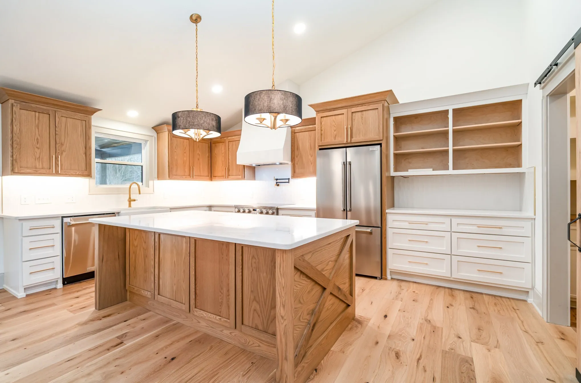 Inside, elegant interior selections and exceptional craftsmanship define every room. The expansive open floor plan flows effortlessly into a designer kitchen enriched with refined finishes, a large center island, and an impressive butler’s pantry that enhances both functionality and sophistication. Custom closet shelving, remarkable trim and moulding work, and a dedicated office add to the home’s elevated feel and everyday convenience.