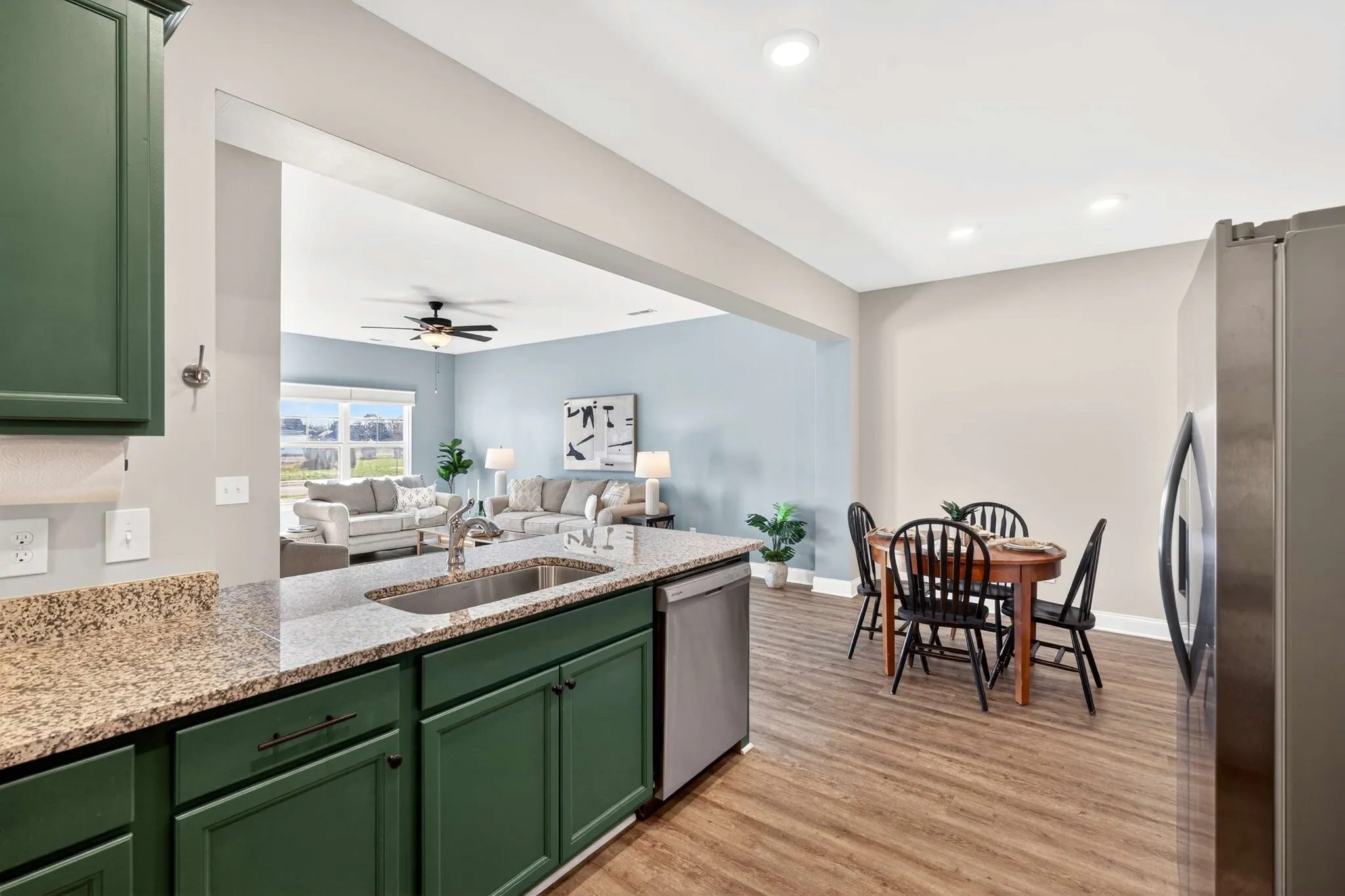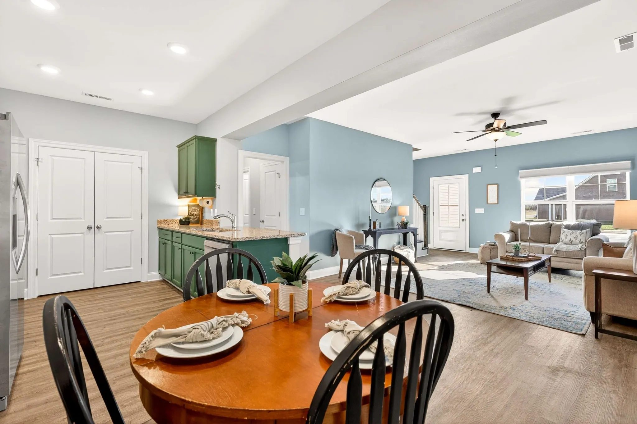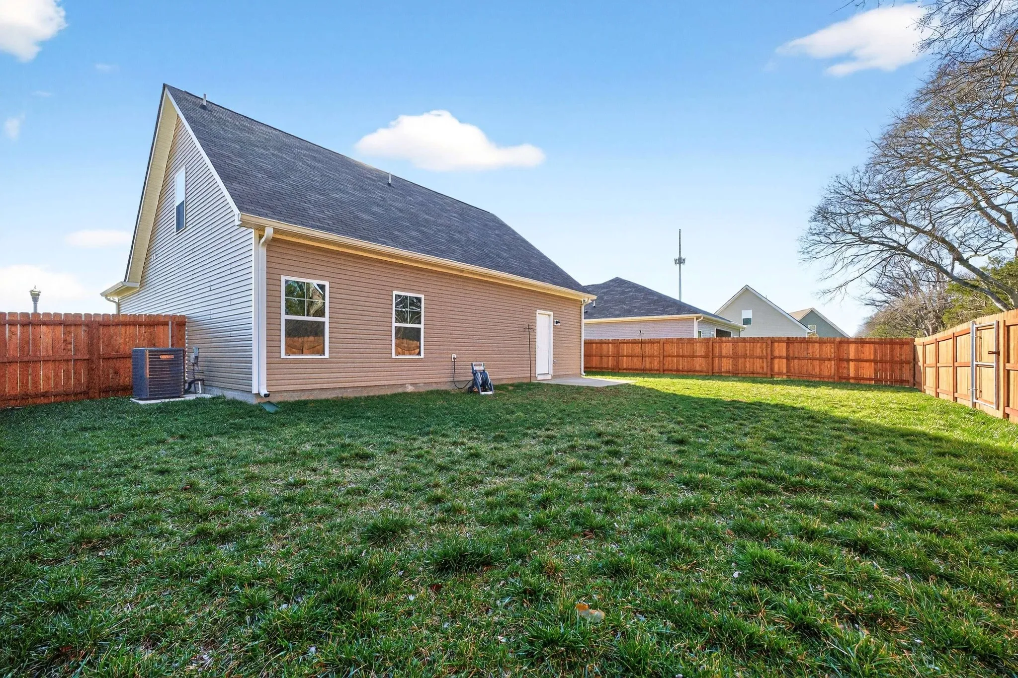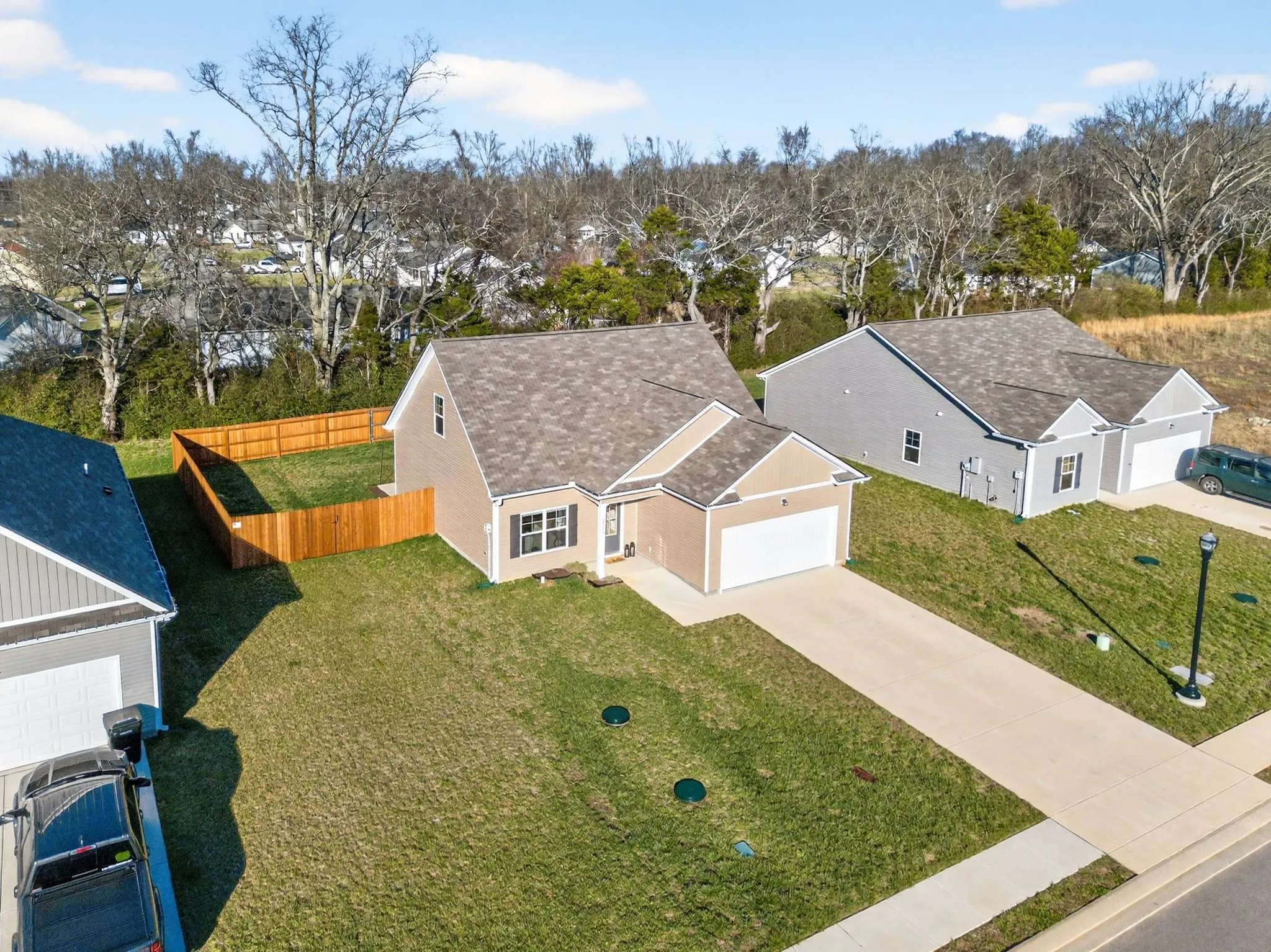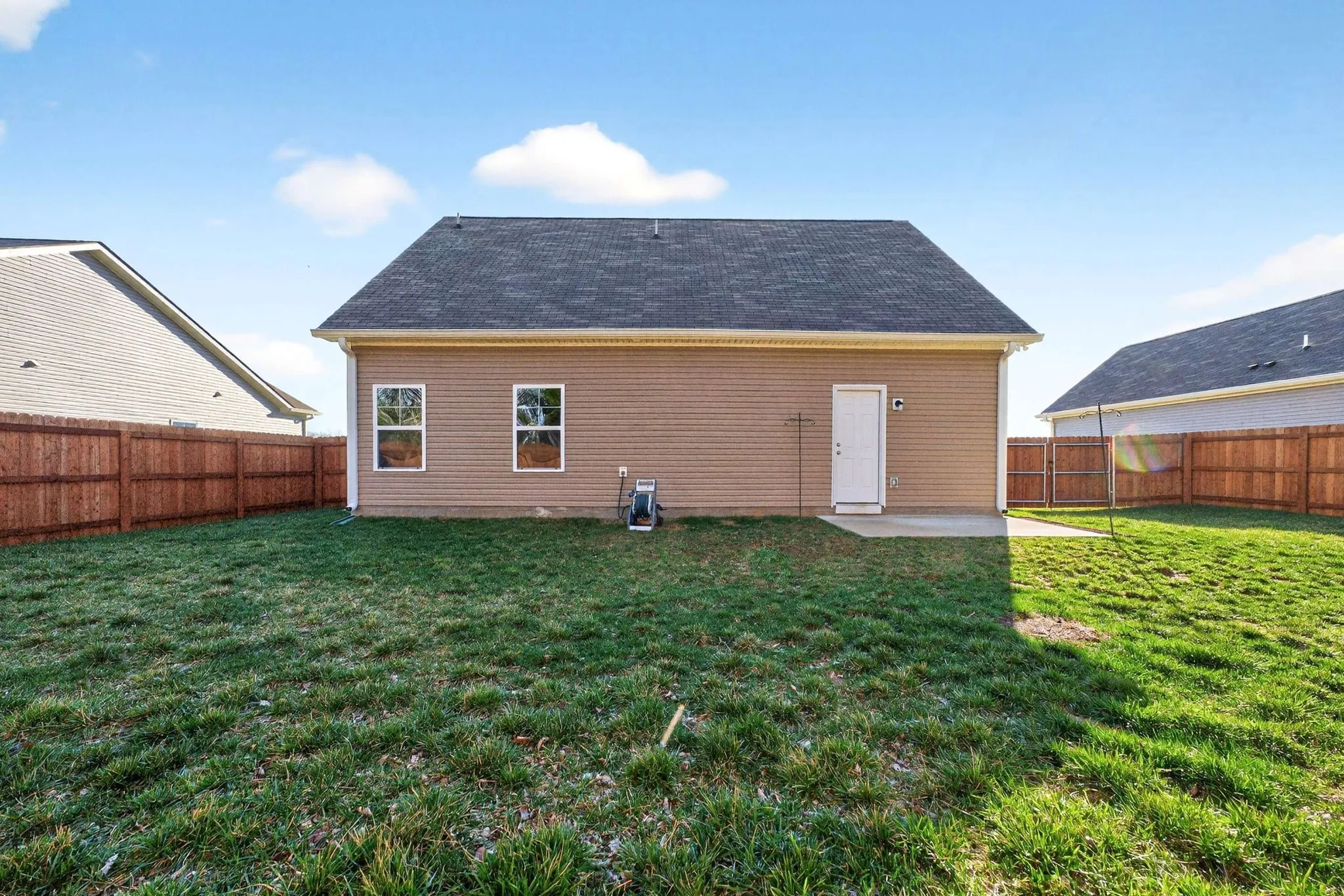 Welcome to Travelers Trace, a community of only 66 homes, where modern style and comfort meet in this like-new, one-year-old home on Gertie Dr, backing to a peaceful wooded tree line that offers the privacy today’s buyers are searching for. This beautifully crafted two-story home features 3 bedrooms and 2.5 baths with an open floorplan designed for functionality. You’ll find durable Luxury Vinyl Plank flooring throughout the main level and a bright, well-appointed kitchen with granite countertops, custom cabinetry, recessed lighting, stainless appliances, and a spacious pantry. The primary suite offers a relaxing retreat with a walk-in shower, double vanity, and a walk-in closet, while a convenient powder room on the main floor adds ease for guests. Upstairs, two more bedrooms and a second full bathroom. Step outside to your private patio and a new $8,000 privacy fence, an ideal outdoor escape for summer evenings, weekend relaxation, or casual gatherings, all set against a natural backdrop. A super clean two-car attached garage with additional driveway parking complements the home, while community amenities including sidewalks, street lamps, underground utilities, and a neighborhood playground enhance your lifestyle. Ideally located near shopping, dining, major commuter routes, and downtown Murfreesboro, this move-in ready home is perfect for buyers searching for Murfreesboro real estate, newer homes with privacy, and easy commuter access to Nashville. Schedule your showing and discover the elevated lifestyle waiting for you at Travelers Trace!