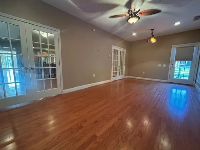 FABULOUS one-level Morningside Plan on an expanded Premium lot, nobody will build beside you!!!! 3 BR, 3.5 BA, Extra deep Garage! Loaded with upgrades, and extensive hardwoods throughout! Formal Dining with trey ceiling, Plantation shutters, and wainscoting trim, as well as convenient access to Butler station with glass cabinetry accents and granite top. Wide open front Entry allows direct access through the french doors to the separate Office/Living area/Hobby Room, offering Plantation shutters and privacy. The well-equipped Kitchen features stainless appliances and a gas built-in cooktop with custom vent hood. Central island and granite countertops, raised bar height serving/eating area, solar tubing for natural lighting, cabinet pull outs, tile flooring, backsplash, under cabinet lighting, built-ins, oversized walk-in Pantry, and tons of prep area round out this open concept Kitchen. Great Room, eating Nook area, and half BA are adjacent to Kitchen…Great Room includes gas fireplace with wood accents and flanked with built-in cabinetry and shelving space. 2 sets of french doors lead from Great Room to the Morning Room/additional Living area, and gives direct access to the back yard and patio area. Primary Bedroom is zoned for privacy, and has trey ceiling with ceiling fan, en suite BA with soaker tub with tile surround, expanded custom tile shower with built-in seating, expanded vanity with double sinks and tons of storage, linen closet, and double sided walk-in closet. The additional 2 BR’s are on opposite zone, each with extra large closet and their own private full BA. Easy access to the Laundry Room with storage cabinetry, work space/folding space, and work sink area. Exterior extended back patio includes an electric retractable awning, Garage is extra deep with epoxy floors, and additional storage built-ins. Buyer transfer fee is 1.2% of sales price, reflected on closing statement…Buyer to verify all info important to them.