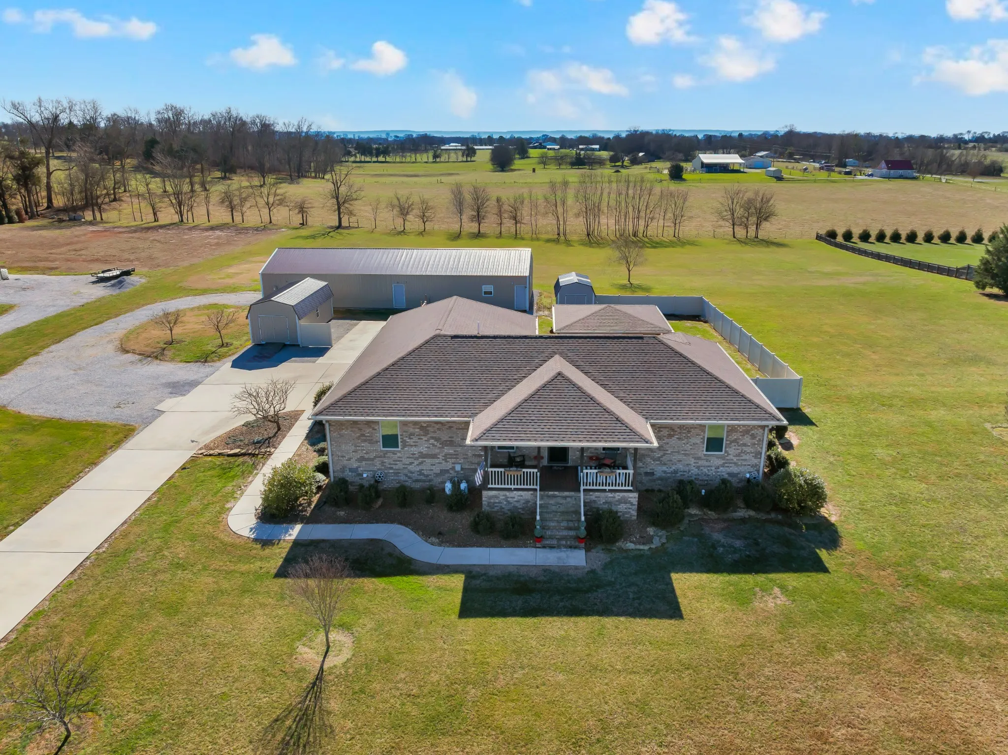 Move in ready, super nice, All Brick home with concrete drive on 3.54 acres on dead end road. Featuring gorgeous lvp flooring and porcelain tile floors (no carpet), Custom remodeled kitchen,quartz countertops, huge pantries, whole house water filter, Jack & Jill bathroom between spare bedrooms, Anderson windows, central vac, vinyl fence, large covered front porch, storm shelter. Plenty of room for all your toys in the 30×80 Pole Barn (30×30 concrete floor, wired & insulated & plumbed for bath if you want to install one) Both He Shed & She Shed. Beautiful landscaping. massive covered back porch, perfect for entertaining or relaxing. A quiet setting just minutes from I-24, Nissan, shopping, hospitals, the airport, University of the South, and Tims Ford Lake — with easy access to Huntsville, Chattanooga, Murfreesboro and Nashville. Country living, no compromise! You will not be disssapointted.