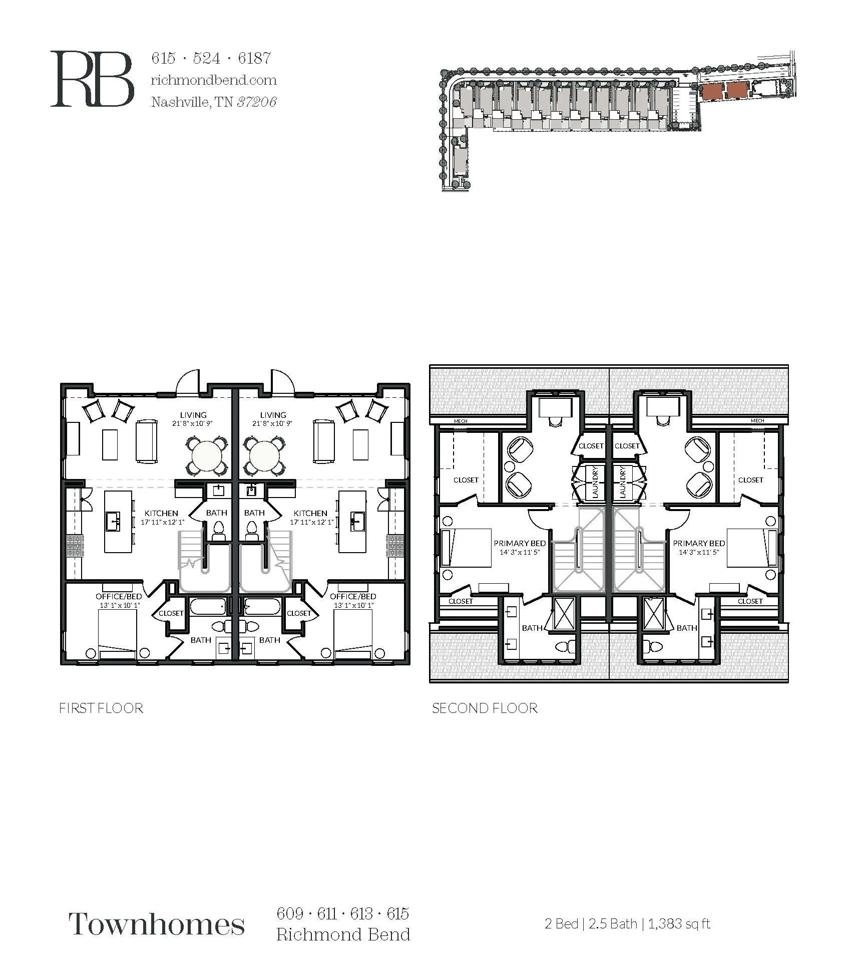 Located just down from the intersection of West Eastland & McFerrin Ave, Richmond Bend is an exciting new mixed-use community from Core Development in the historic Greenwood neighborhood of East Nashville. Steps from amazing and award-winning restaurants and shops, such as Mas Tacos, Pharmacy Burger, Lyra, Peninsula, Framework, Bookshop and more. Richmond Bend leads with a brand new restaurant at its McFerrin Ave entrance that will be home to Bar Cala Cala, the next culinary endeavor from the team behind Xiao Bao. Just behind that will be a small group of luxury townhomes, including this beauty at 611 Richmond Bend. Designed by Pfeffer-Torode Architecture with interiors by Design Object and landscaping by Firma the project is underscored by sophisticated finishes and classic details including light wood, wide plank floors, large scale windows, elegant staircases and high ceilings. On the main level you have an open living area with well appointed Italian influenced kitchens featuring Bertizoni appliances. There is also a secondary bedroom suite/office suite, and a separate powder room. Upstairs is the primary suite with bonus closets, an elegant bath and a separate office/den with WD closet.