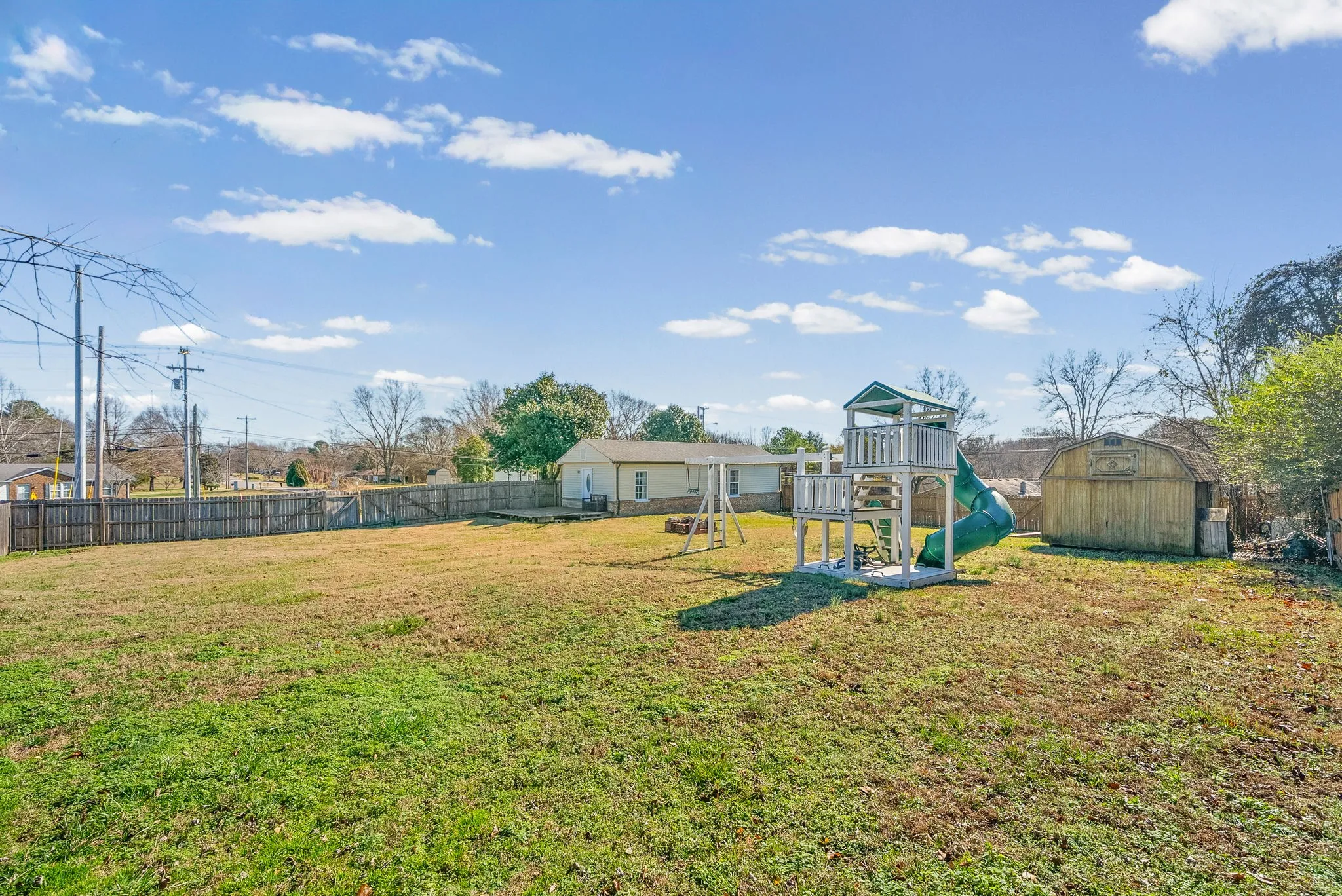 The Cutest Country Bungalow Home right in town, minutes to Clarksville’s Greenway and Fort Campbell. Spacious 4 Bedroom 2 Full Bath Home tucked on a half acre corner lot with utility shed and playset. Big Eat in Kitchen with room for the whole family around the dining room table. All of the bedrooms are large but the Primary Suite is huge with plenty of room for you to have a separate sitting area in your bedroom. Seller is offering closing cost assistance!! Call your favorite REALTOR to schedule a showing today!