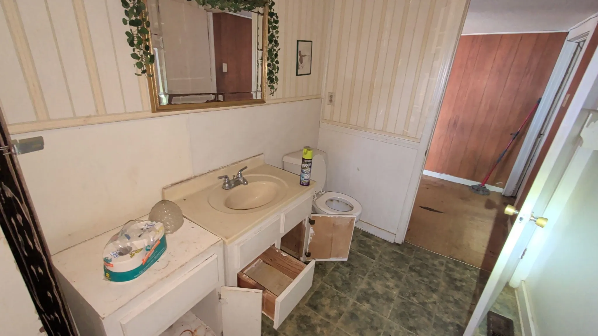 The home features a ranch-style layout, front porch, and multiple rooms ready for a full refresh. Offers a great starting point for someone ready to bring it back to life.