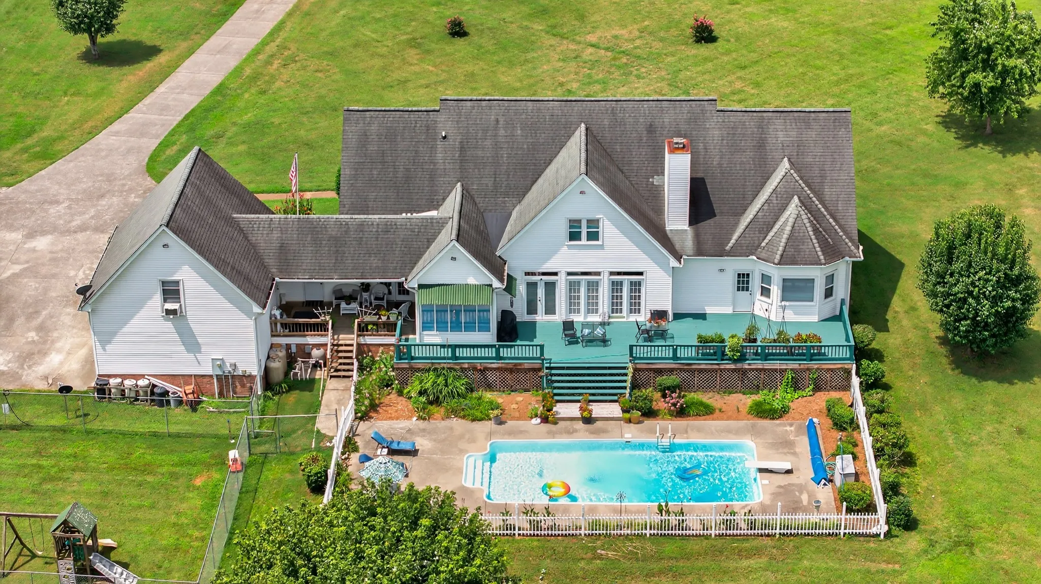 NEW FLOORING! NEW PRICE! Stunning home on 7.43 scenic acres. Peaceful living with all the space and flexibility you can imagine. Outdoor space galore.Rocking chair front porch competes only with expansive back deck that expans the entire back of this beautiful home.Overlooks inground pool and priceless view of gorgeous land.