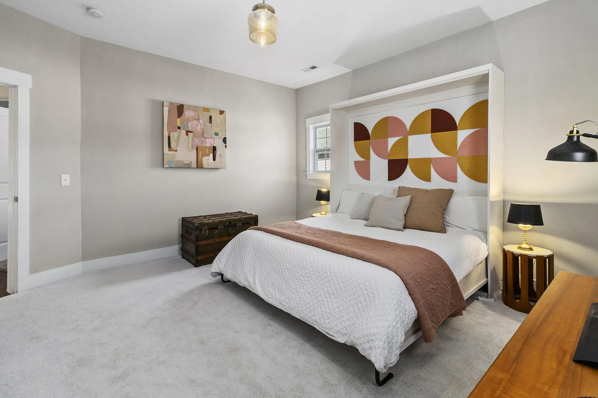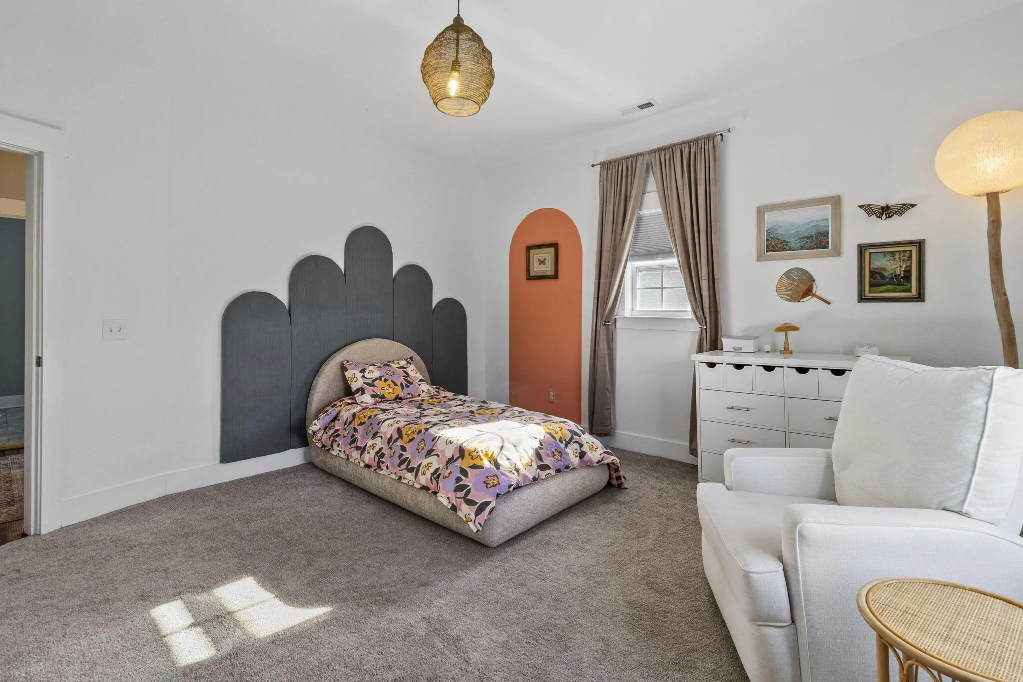 Upstairs offers three oversized bedrooms with soaring ceilings, including one with a custom Murphy bed—perfect for a sophisticated home office or guest suite. Living spaces extend outdoors to a peaceful screened porch overlooking a lush, fenced backyard. This private oasis includes a powered shed and a new parking pad secured by an electric gate. Lovingly maintained and thoughtfully updated, this home is a rare opportunity to join a vibrant, welcoming neighborhood.