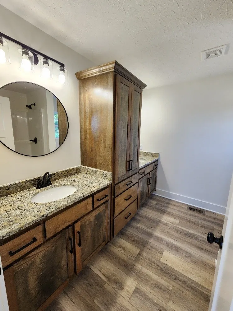New 3 bdr 2 bath home in Rolling Meadows -1,500 sq feet- custom cabinets with granite tops in the kitchen- stainless appliances- lvp flooring throughout- spacious rooms- walk-in closet in master suite- walk-in closets-pantry closet-cathedral and tray ceilings- storage in attic-concrete drive- landscaped – Don’t miss this one!