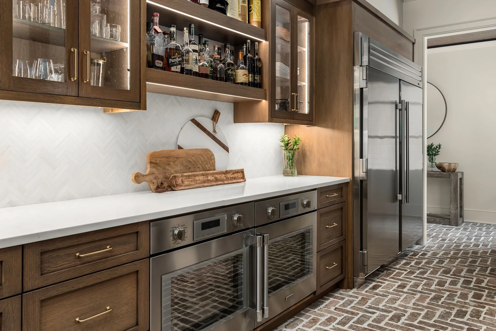 Designed for both grand entertaining and effortless everyday living, the property features 6 full baths, 2 half baths, a 5‑car garage, two laundry rooms, a spacious bonus room, and a beautifully appointed guest house connected to the main residence by a covered brick walkway. The layout blends elegance with functionality, offering generous room sizes, sophisticated finishes, and exceptional flow throughout.