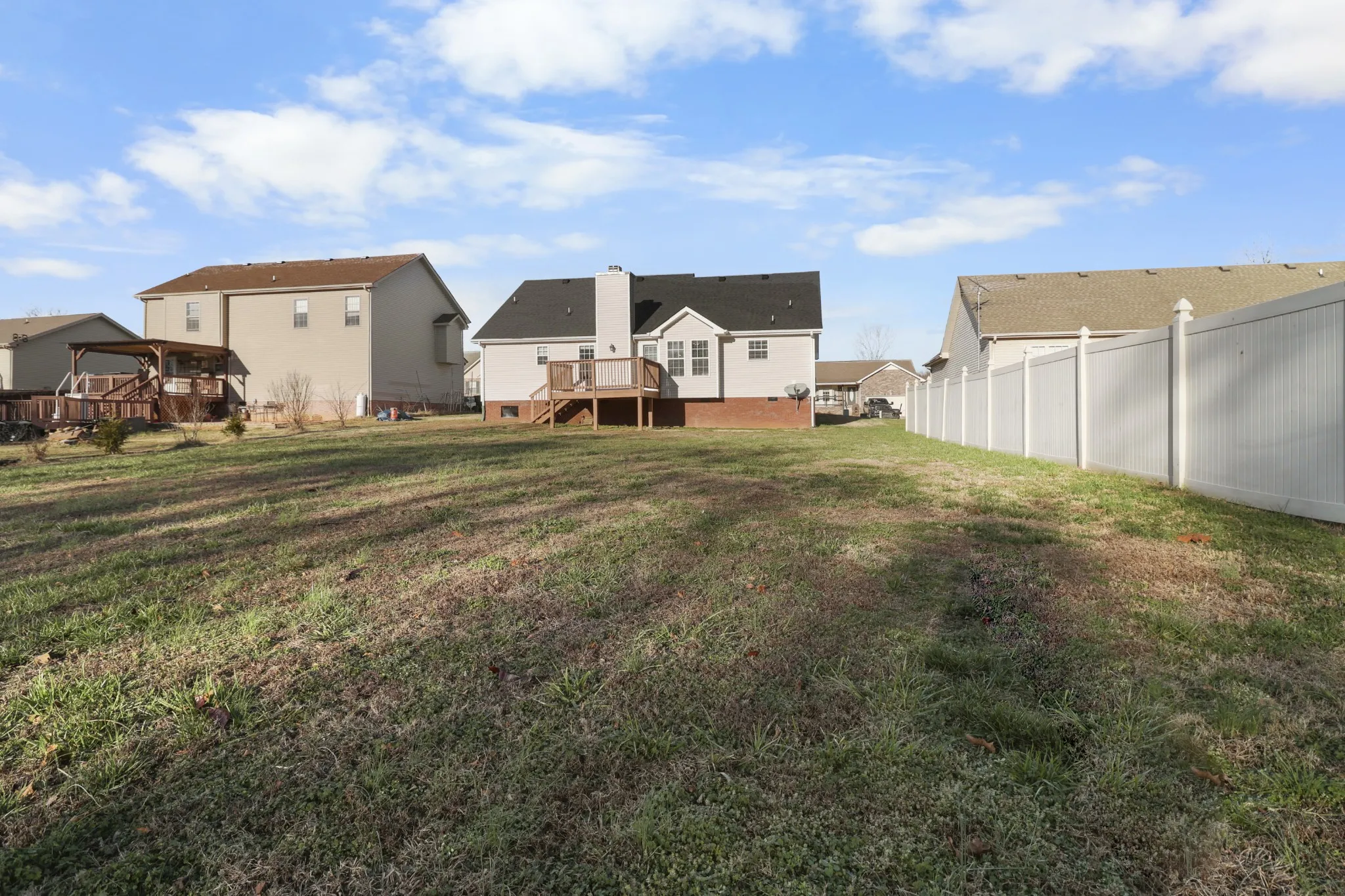 Welcome to this move in ready, great central location, 3-bedroom plus bonus room home. Recent updates include front half of the roof replaced, back half of the roof approximately 9 years old, brand-new carpet and fresh interior paint throughout. The kitchen has been refreshed with new countertops, and the living area features a beautifully tiled fireplace as a focal point. Step outside to enjoy the newly painted deck and large backyard with no home directly behind, perfect for relaxing or entertaining. Additional improvements include a newer Rheem HVAC system installed on 4/8/2021, providing peace of mind and efficiency. The home blends updates with functional living space! Quick access to shopping and gas. Don’t miss the opportunity to make it yours!