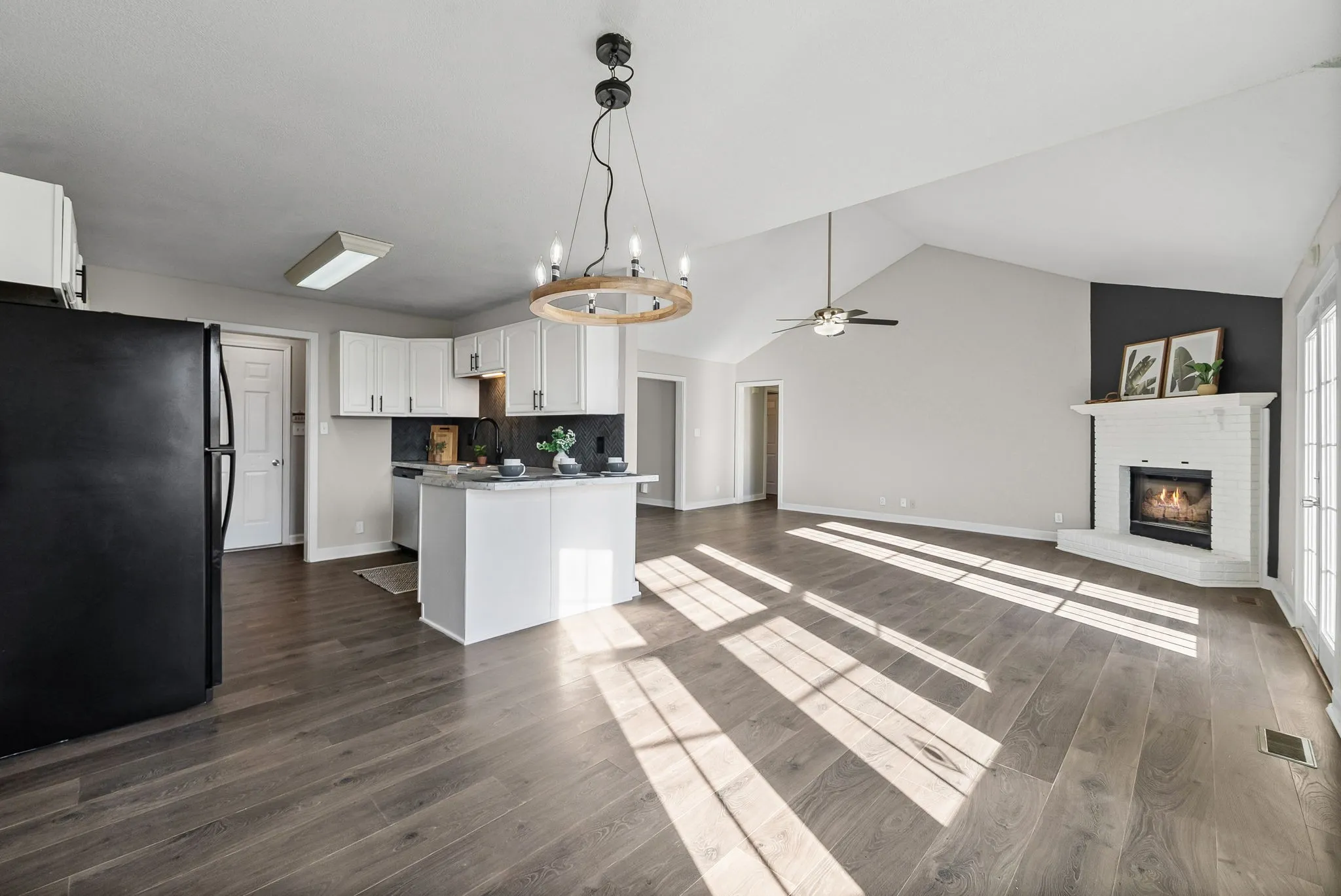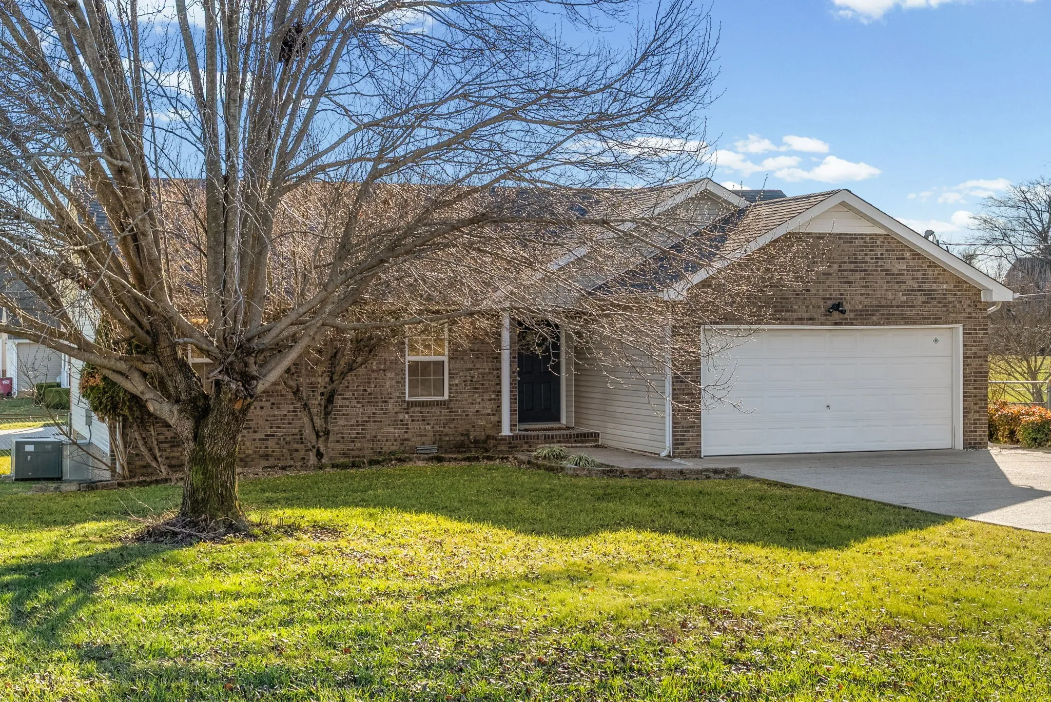 This home is full of recent updates and ready for its next owner!! FRESH PAINT, NEW FLOORING, and a NEW ROOF take care of the big items so you can move right in with confidence! The open concept living area features tall ceilings and a gas brick fireplace that anchors the space and makes it great for everyday living or hosting friends and family. The layout flows easily from the living room to the kitchen and eat-in dining area, creating a functional setup that feels open without wasted space.Outside, you’ll find a large fenced backyard with plenty of room to spread out, play, garden, or host gatherings. The deck is perfect for grilling or relaxing, and the big CORNER LOT adds extra space and privacy. A two car garage provides storage and parking, with additional driveway space for guests. This home is conveniently located close to shopping, restaurants, and daily needs. It’s an easy drive to FORT CAMPBELL and about 45 minutes from Nashville, making it a great option for commuters or anyone wanting access to the city while still enjoying a quieter setting at home. With major updates already completed, a spacious yard, and a practical layout, this property offers a solid opportunity in a desirable location. Come take a look and see how this home fits your needs!