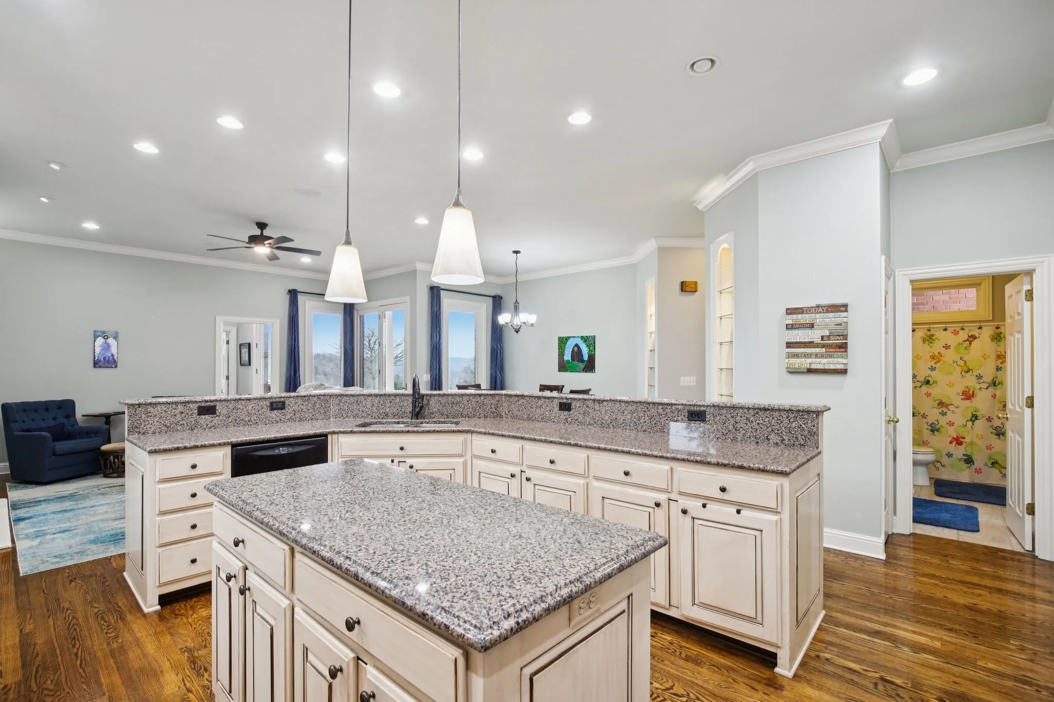 Discover this breathtaking 3-bedroom, 3-bathroom home spanning over 4,000 square feet. It features custom upgraded hardwood floors in the master bedroom, living room, dining room, and kitchen/family room. The remaining two bedrooms and the bonus room upstairs have upgraded carpet. All bathrooms boast luxurious quartz countertops and vessel sinks. All appliances are included with the home. There are three separate heating and cooling zones and two upgraded, energy-efficient water heaters. The home has a 400 Amp electrical service. The master porch is pre-wired for a hot tub, and there’s an encapsulated crawl space. The property includes a four-car/tandem garage and a fiberglass in-ground pool with an electric safety track pool cover. A small outdoor barn is suitable for gardening or horses, and there’s a four-person F1 rated tornado shelter. The property spans across 16.12 acres and offers stunning views, the best in Sumner County!