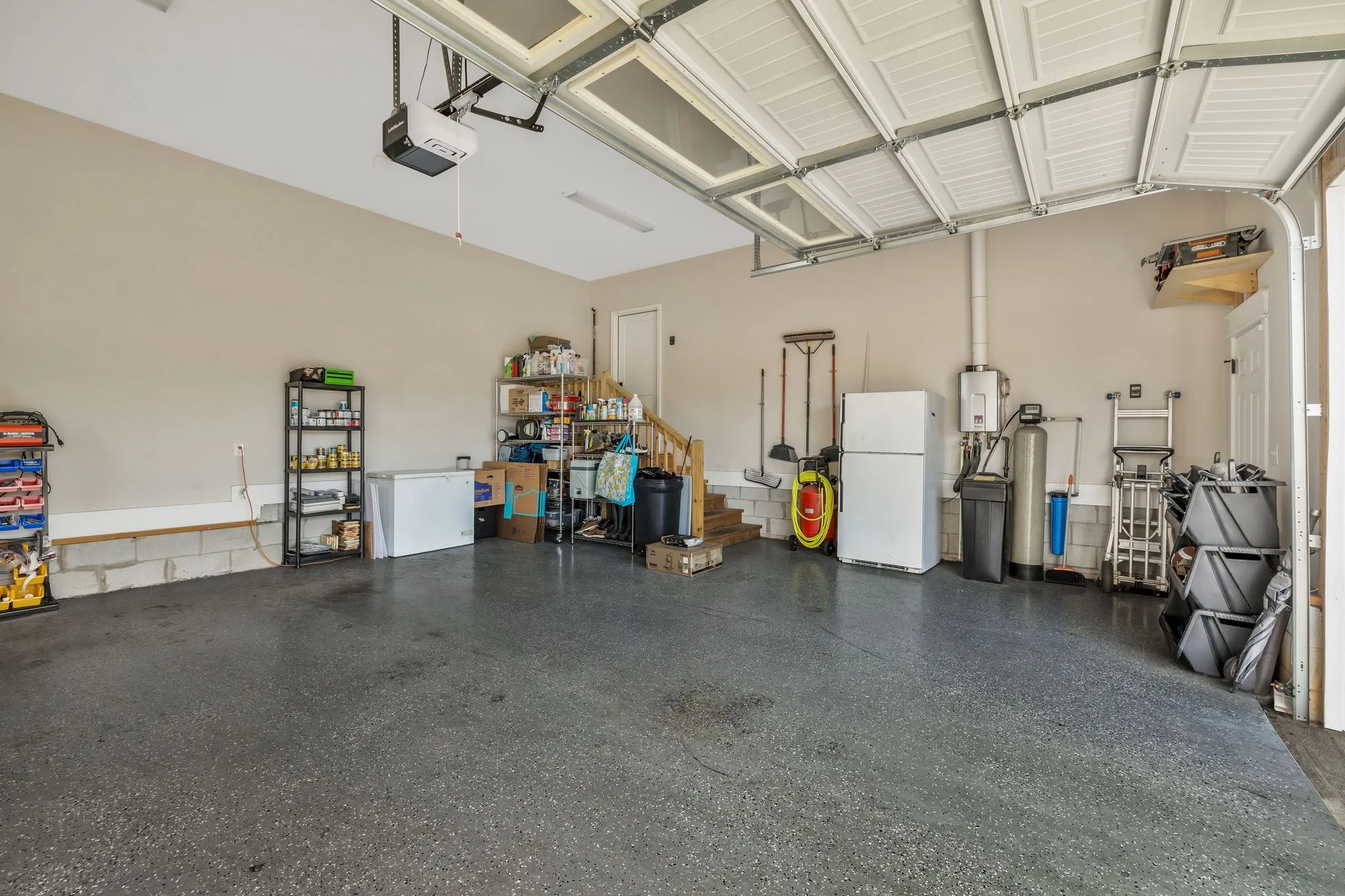 Single garage bay is currently outfitted as a golf simulator complete with portable heating and cooling equipment. Equipment does not convey but is negotiable, or the sellers will convert the space back to a traditional third-car garage. Water softening system & refrigerators convey.Tankless water heater