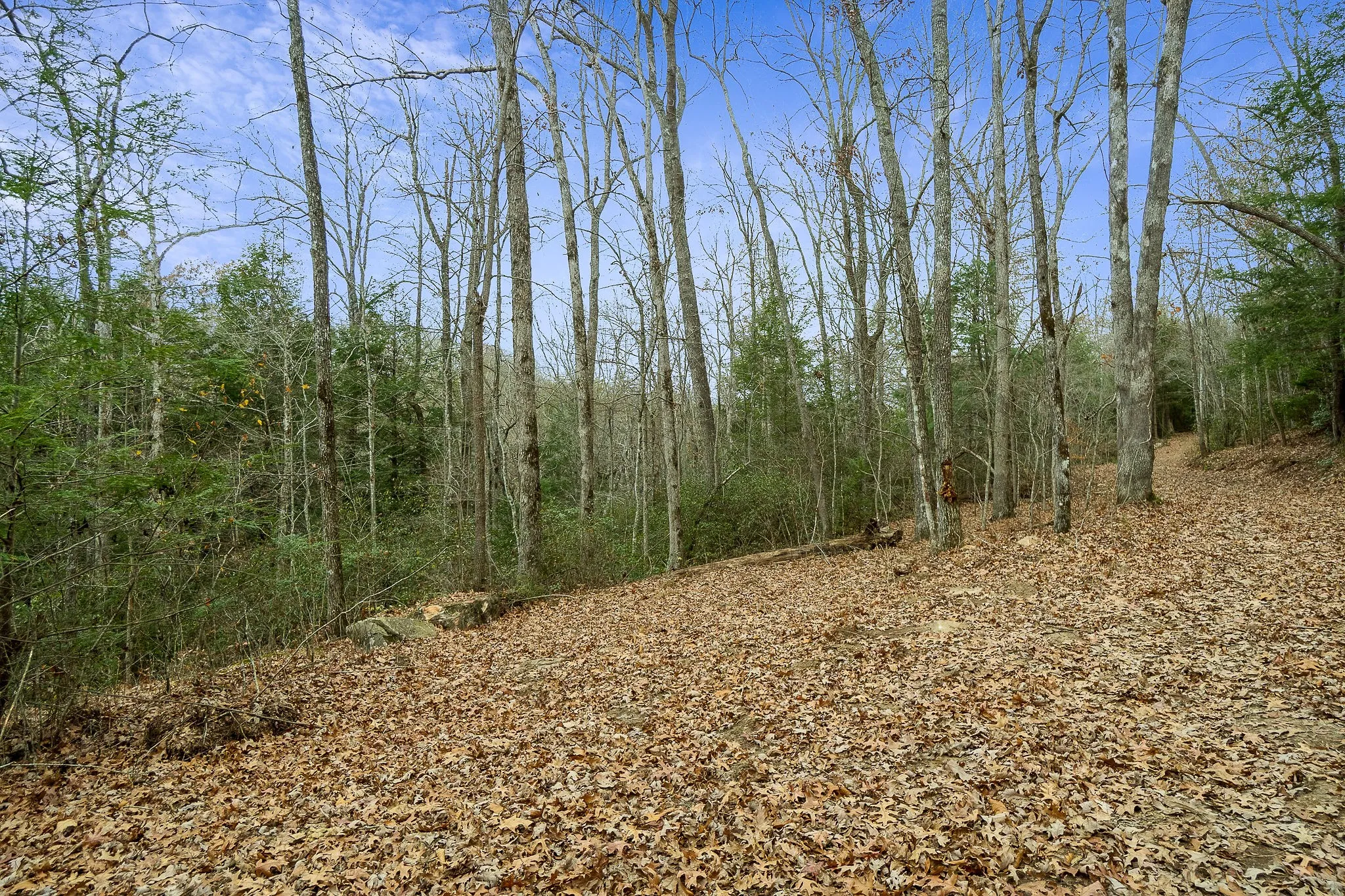- Lot Features: Cleared, Level, Wooded, Rolling Slope