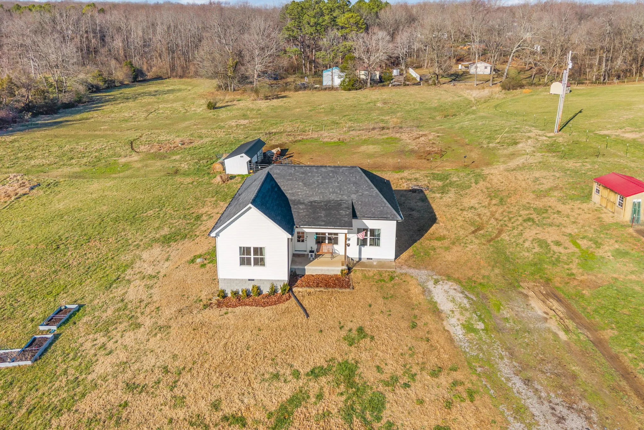 Rare opportunity to own a 5-acre mini-farm perfectly situated just minutes from the heart of Dickson! This 3-bedroom, 2-bathroom ranch-style home offers the ideal blend of modern convenience and rural serenity. Built in 2021, the interior features an inviting open-concept floor plan with upgraded cabinetry, granite countertops, and stainless steel appliances. Outside, the property is a dream for animal lovers and hobby farmers alike. Approximately 3.5 acres are already fenced off for horse pasture, and the backyard features a storage shed and a chicken coop—both of which convey with the sale. The expansive lot provides a picturesque setting that backs up to a peaceful, year-round creek, offering a private escape for relaxing or exploring. Enjoy the quiet country lifestyle without sacrificing accessibility, as you are less than 5 minutes from downtown Dickson’s charming shops, local restaurants, and essential amenities, and only 10 minutes from I-40. Whether you are looking for a turnkey horse property or a quiet retreat with plenty of room to grow, this unique homestead at 1211 N Charlotte St is ready for you to call it home.