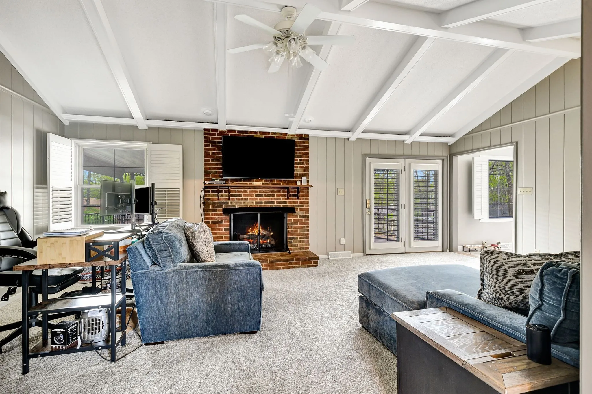 Step inside this classic all brick ranch style home offering generously sized rooms and a layout designed for everyday living and entertaining. The eat-in kitchen features freshly painted cabinets, tile backsplash, recessed lighting, and a breakfast bar—creating a warm, inviting gathering space. A formal living room with an electric fireplace provides a cozy retreat, while the separate den offers high ceilings and its own gas fireplace. Hardwood and tile flooring run throughout the main level, with the den featuring alternate flooring.