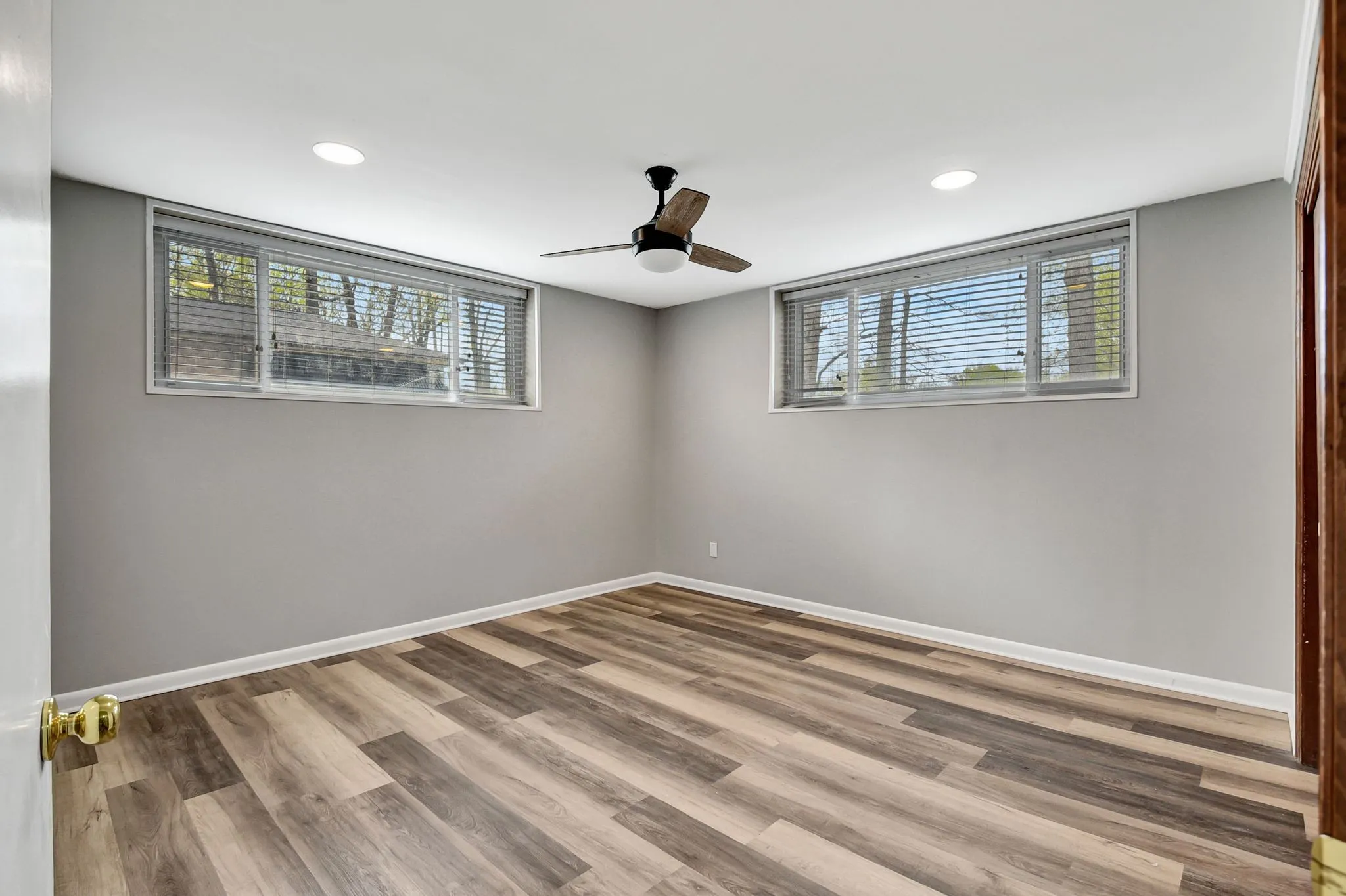 Recent updates include a new roof (Aug. 2024), gutters and gutter guards replaced less than two years ago, energy-efficient front and back doors, new electrical panel, foundation repair with full warranty, LVP flooring in approximately 90% of the basement, and new garage doors.