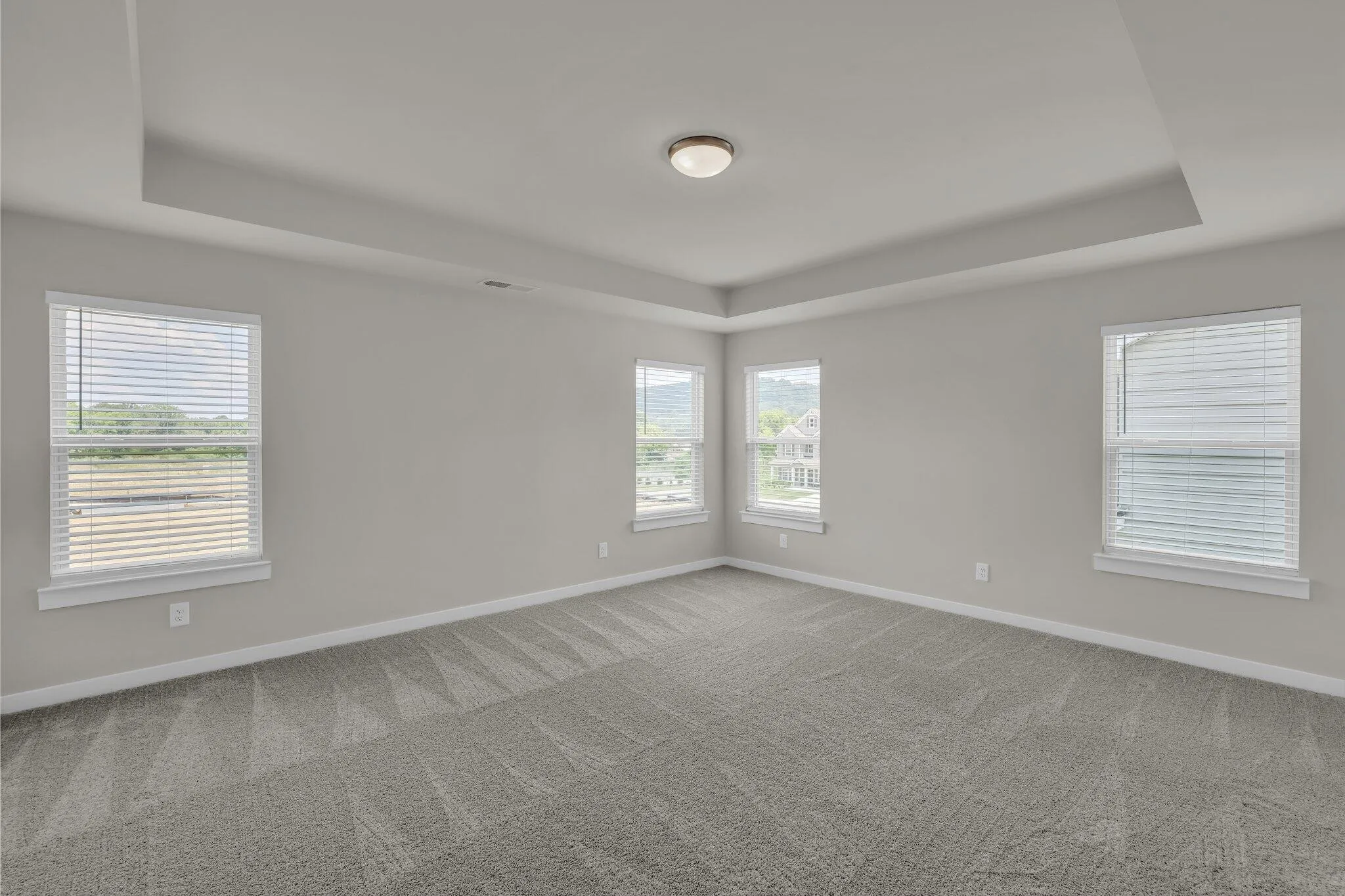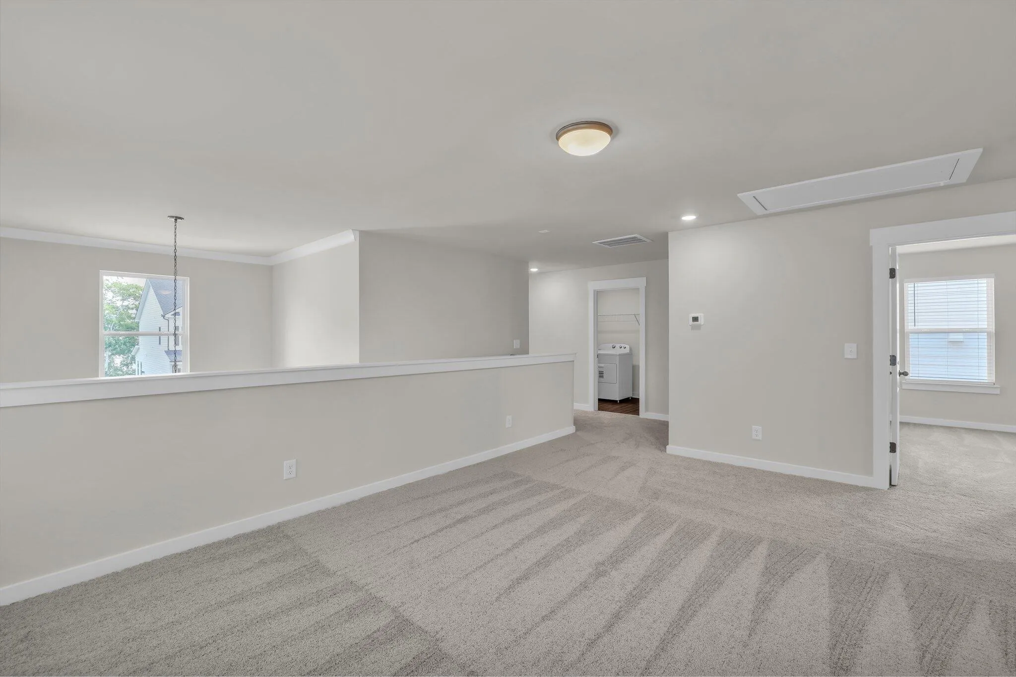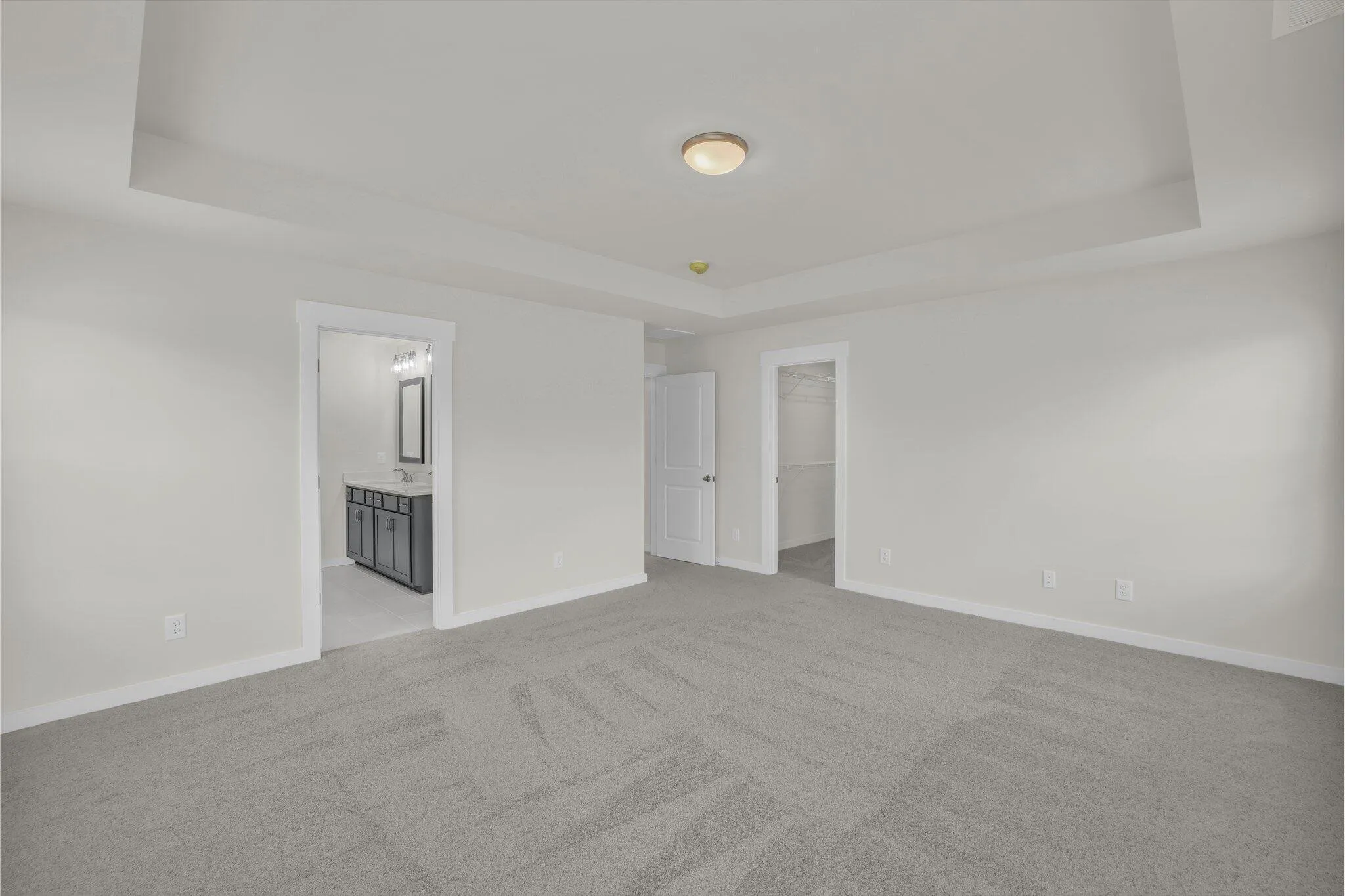 One bedroom and a full bathroom are conveniently located on the main level, perfect for guests or a home office, while three additional bedrooms and the loft are upstairs. The primary suite boasts a tray ceiling, generous space, and abundant natural light.