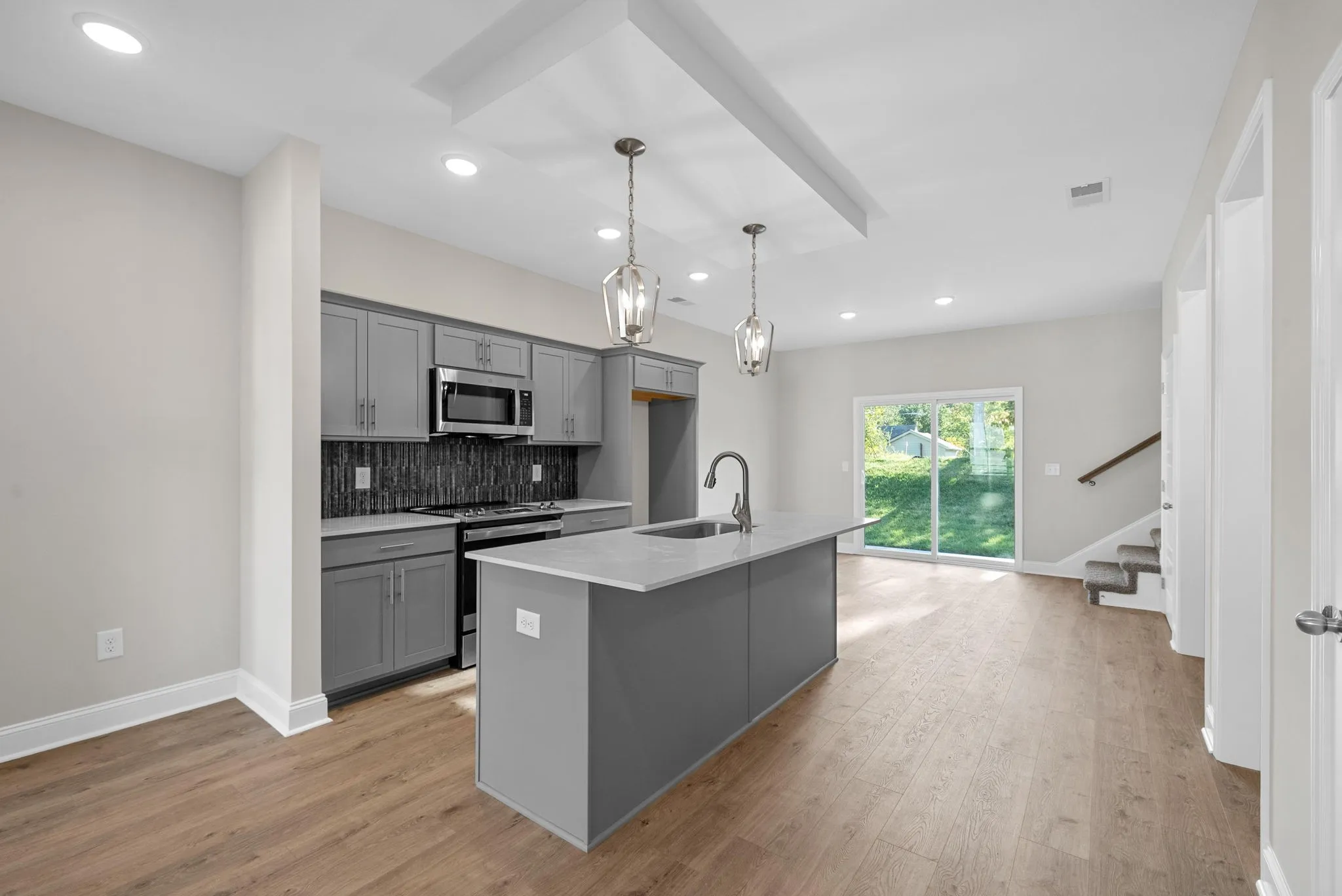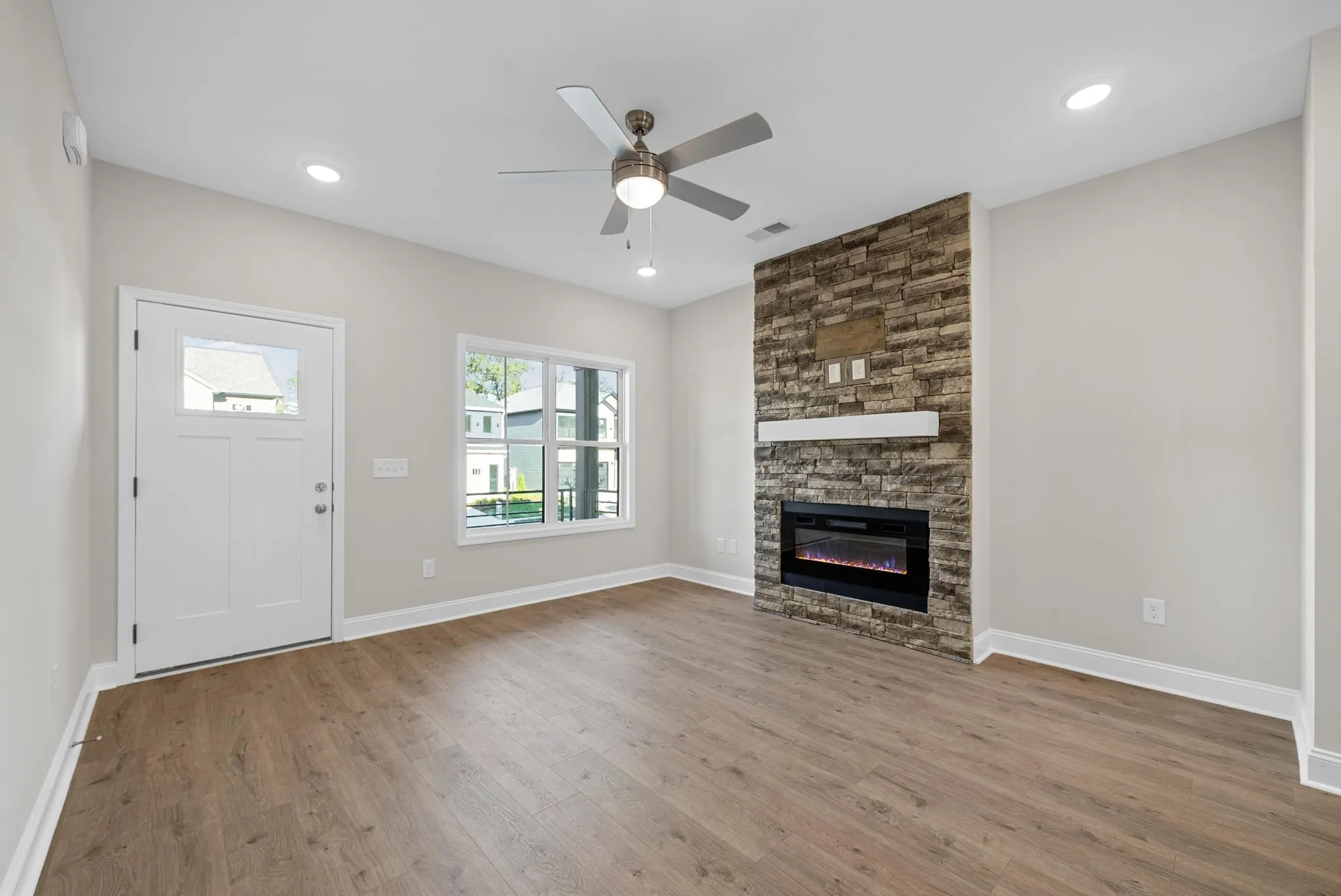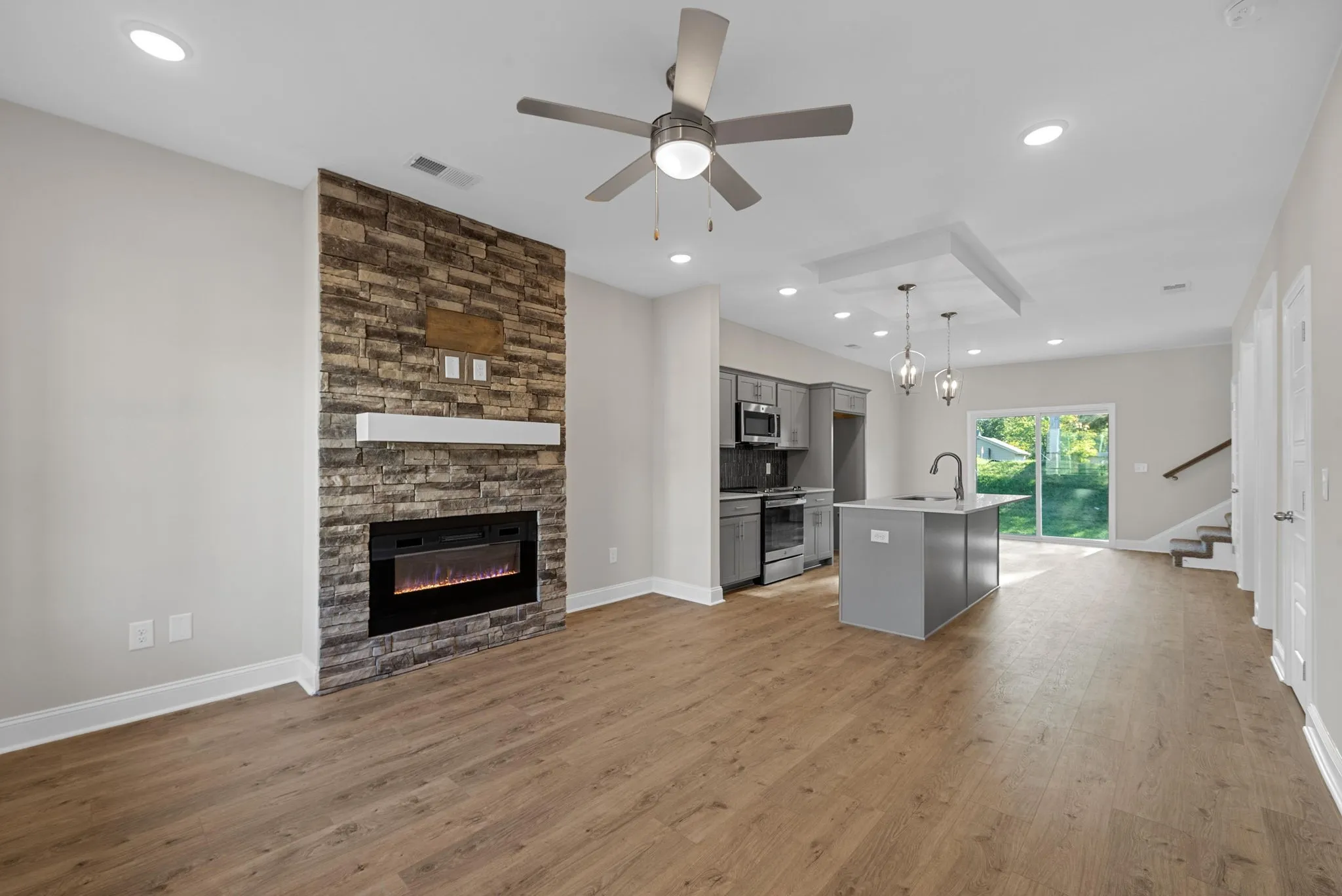 WOW! Clean lines, cozy vibes, ultimate sophistication. Modern living in the heart of downtown, walking distance to APSU! 3 bedrooms, 2 bathrooms, open layout living room with electric fireplace, spacious kitchen with walk-in pantry, built-in desk nook & eat-in dining with incredible sliders to backyard. Design is in the details on this floor plan, even on the staircase with a bold accent wall. Enjoy a second floor loft area perfect for relaxing, centrally located laundry for convenient routines PLUS a drop zone with cubbies and bench leading into a large one car garage. A fully sodded tree lined backyard? Sounds like the ultimate way to relax after a long day. Tour the most stylish house on the block with the incredible upgraded amenities at a price you can’t refuse. View today!