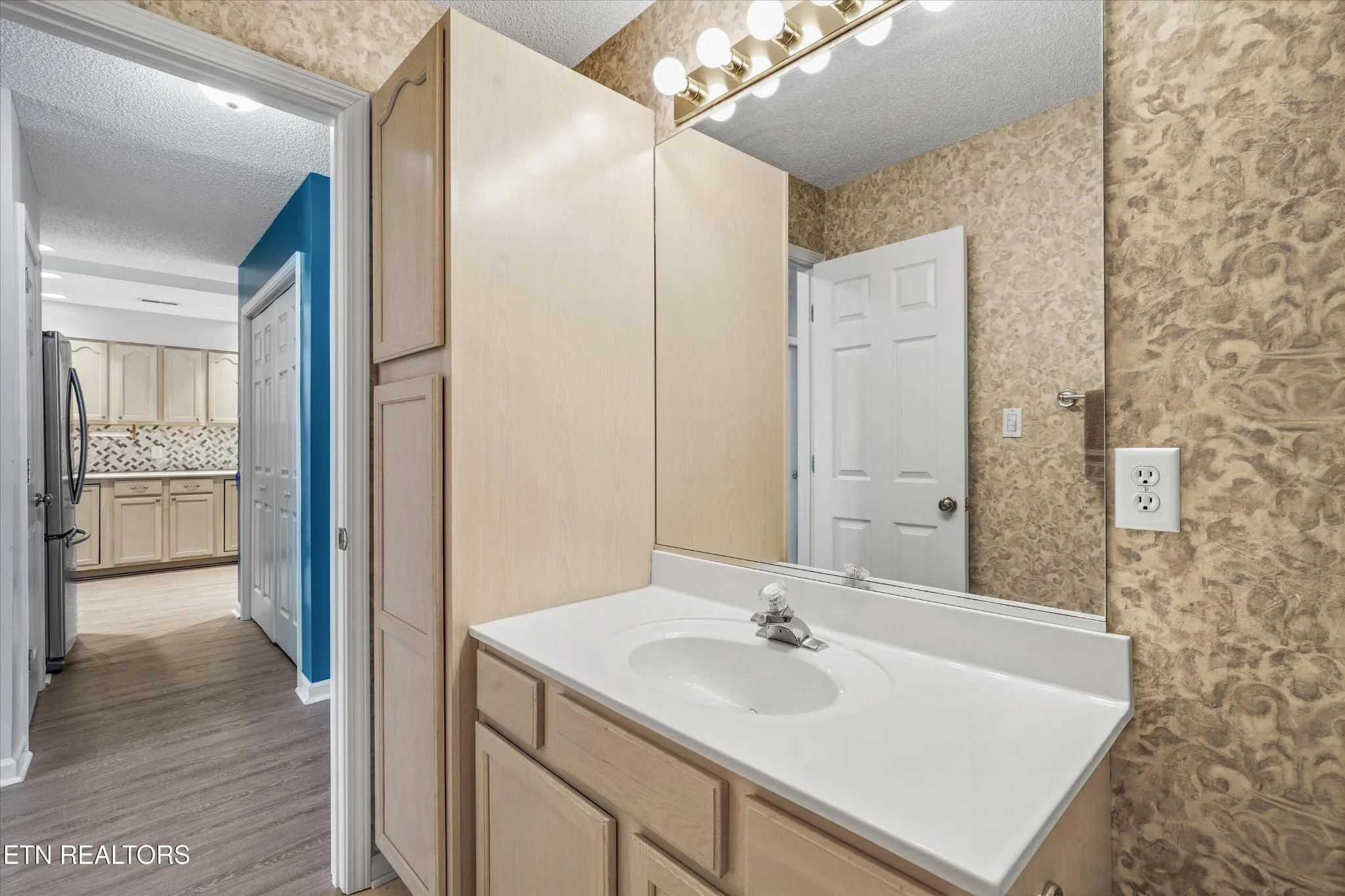 The massive living room is a true standout, offering endless flexibility for furniture layouts and entertaining. Brand-new LVP flooring runs throughout the main living areas, adding a modern touch while being durable and easy to maintain. The sellers thoughtfully opened the kitchen to overlook the living and dining areas, creating an open, inviting flow filled with natural light. The updated kitchen features fantastic cabinetry, granite countertops, a tile backsplash, a sleek microwave, and a skylight that floods the space with sunshine. The kitchen is also equipped for either an electric or gas stove, offering flexibility for your cooking preferences.