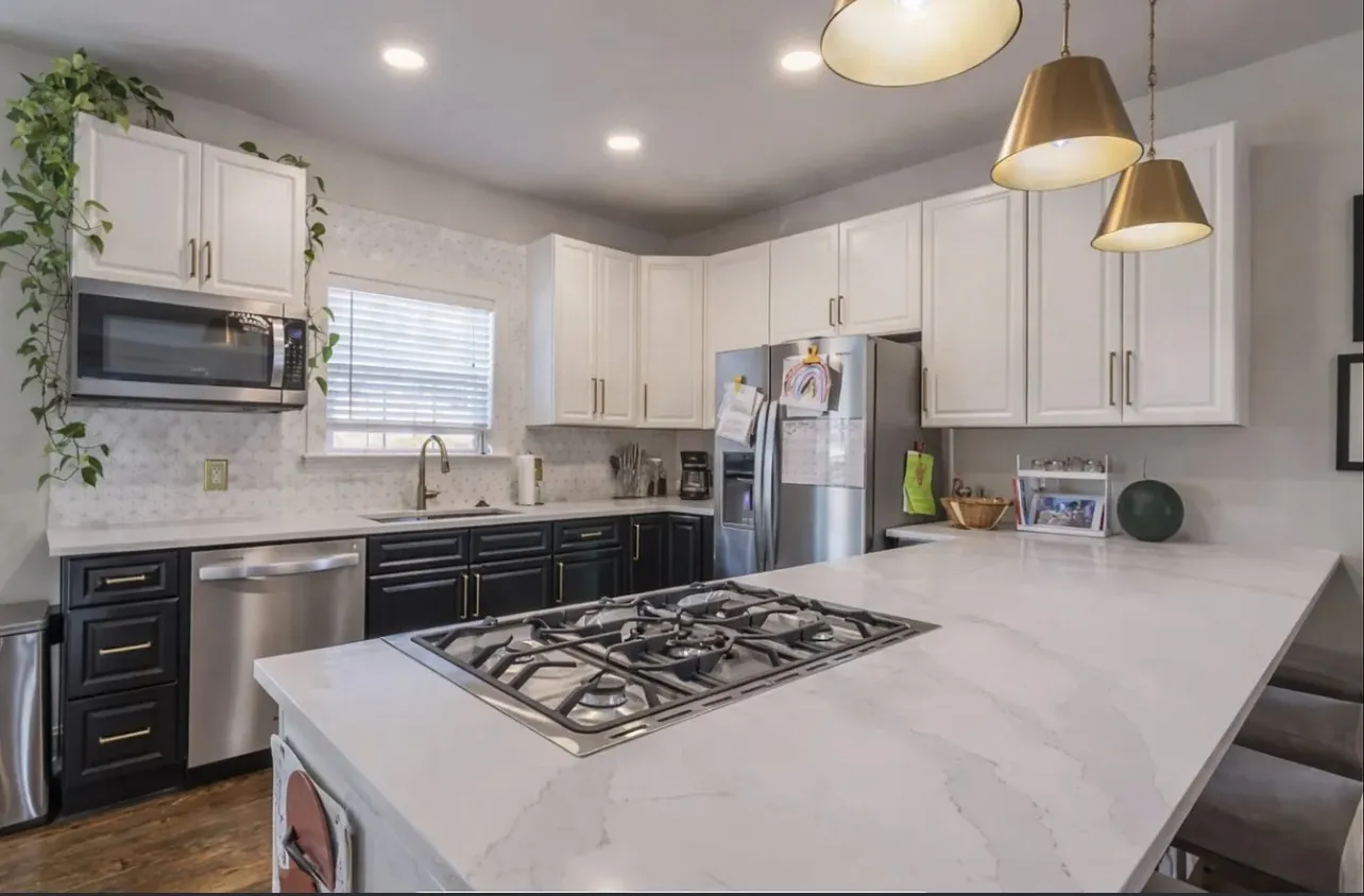 Quartz countertops & 36-inch gas stove\n