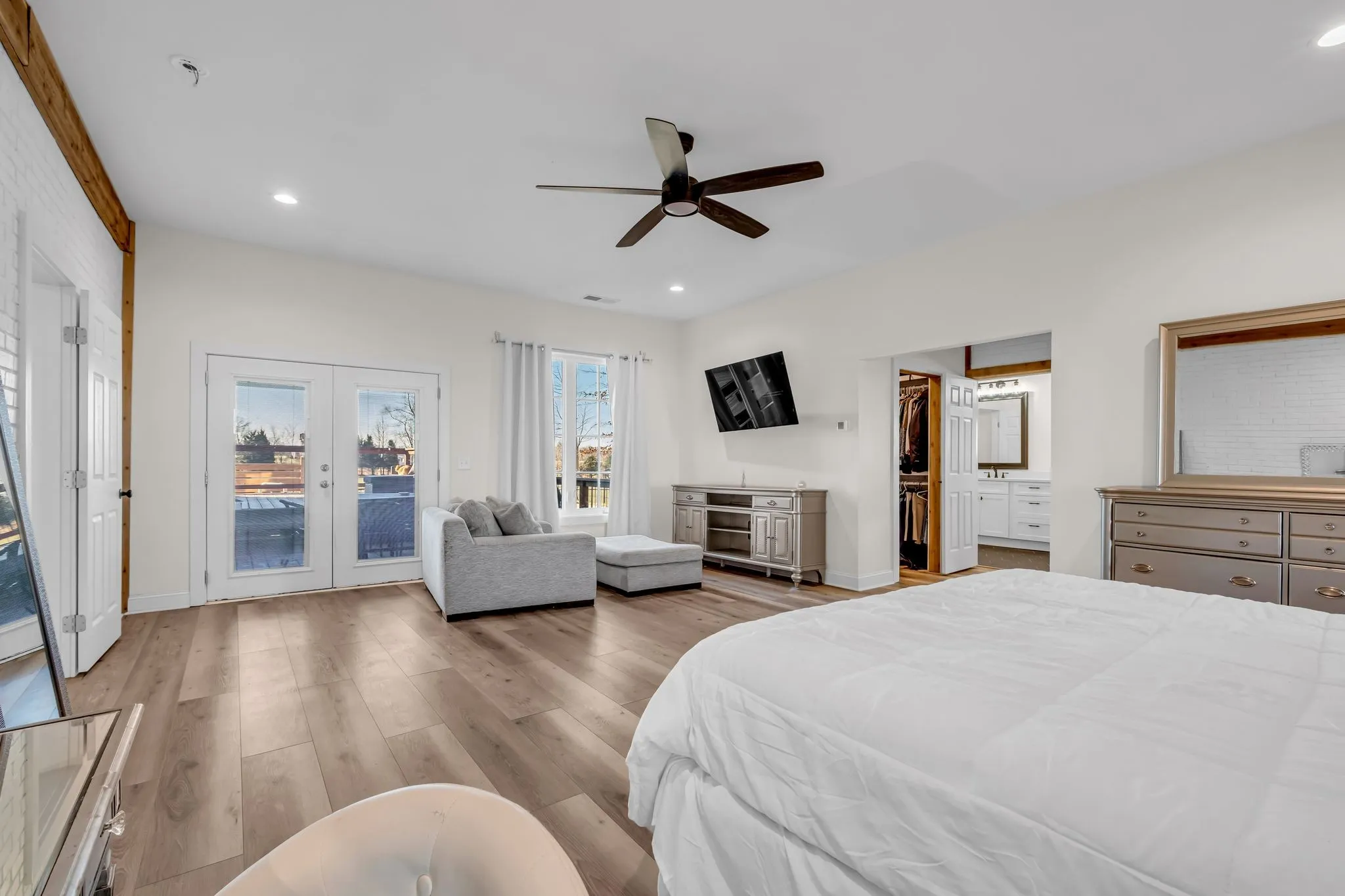 This spacious home features 4 generously sized bedrooms and 3.5 baths, thoughtfully updated with upgrades throughout. The primary suite is a true sanctuary, offering plenty of space for relaxation and large furnishings. The luxurious en-suite bath boasts a soaking tub, oversized tiled shower, double vanities, and a huge walk-in closet.