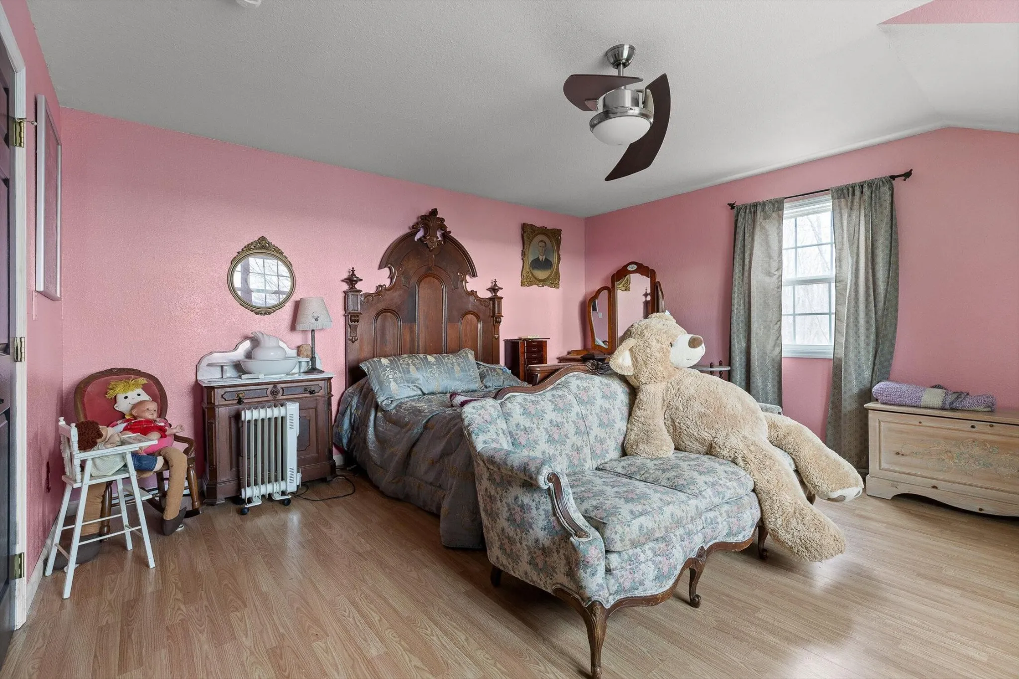 Welcome to your private mountain retreat where peace, space, and community come together. This beautifully designed home sits on almost 7 acres of serene, tree-lined land and offers breathtaking mountain views from nearly every angle. A charming spiral staircase leads to a loft, adding character and flexible living space.