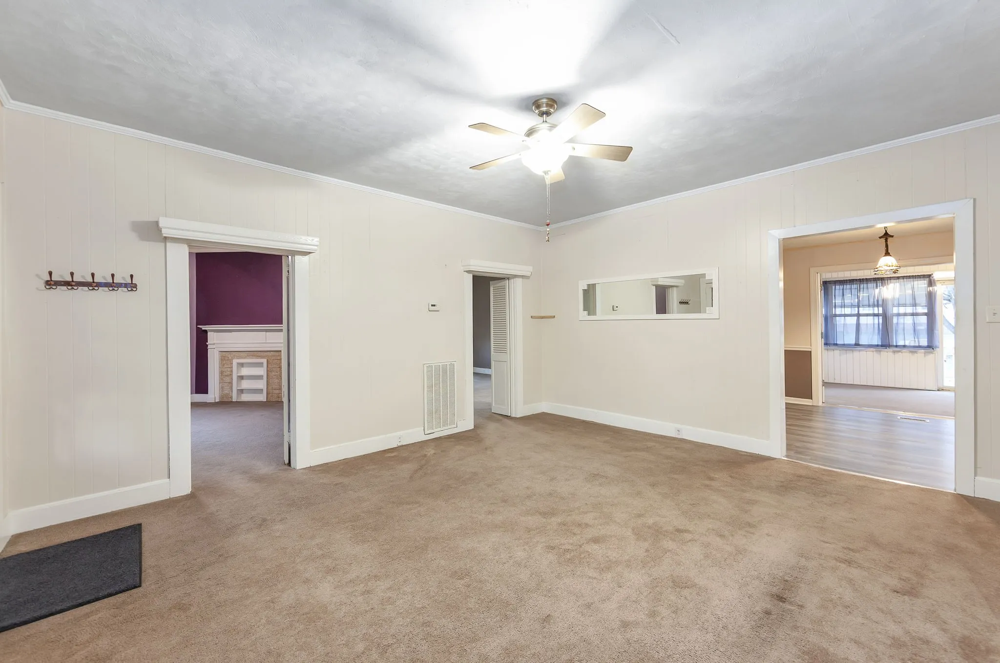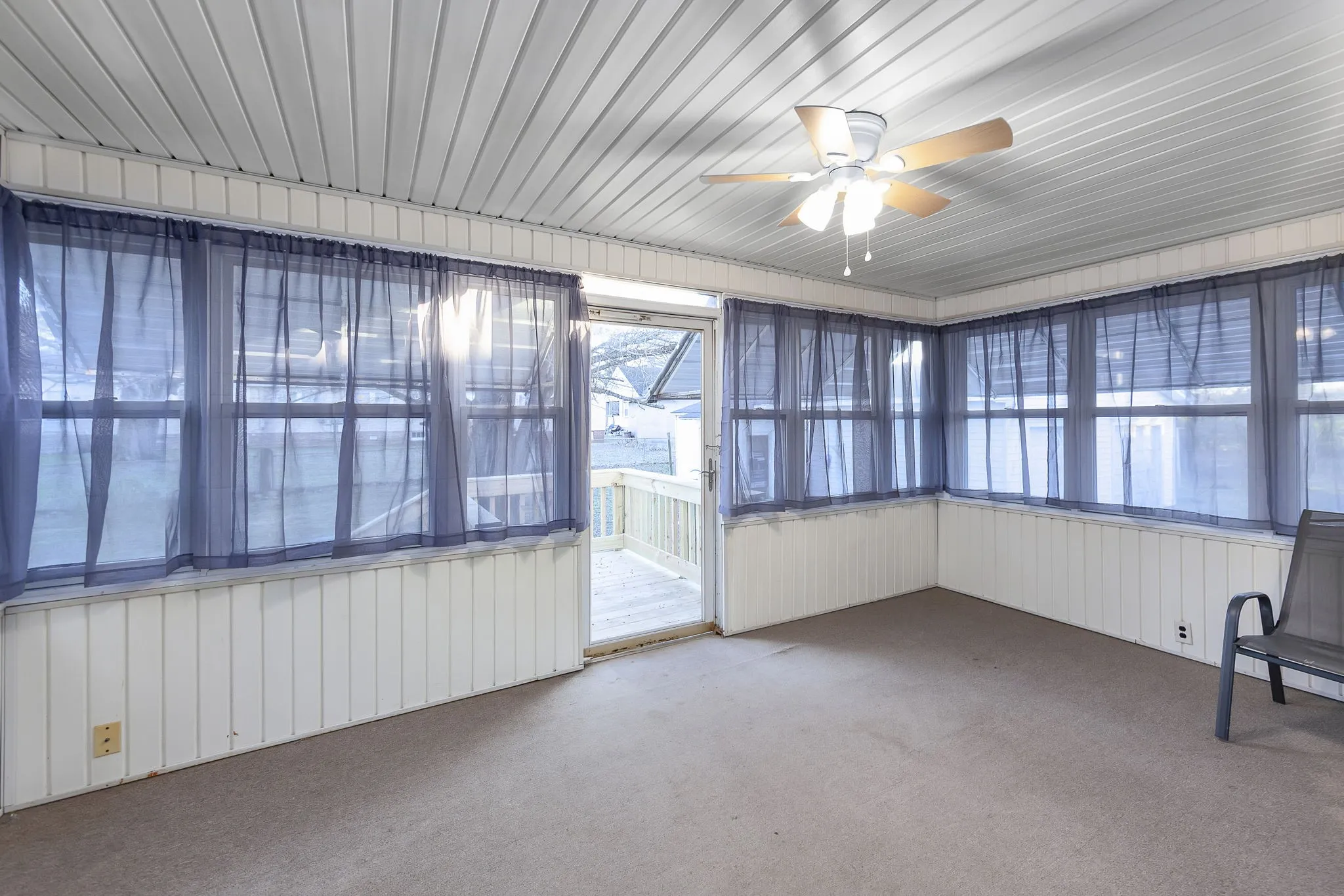 Discover the charm of this quintessential All-American small-town home, brimming with character from its 1920s origins. Unwind on the inviting front porch as you soak in the neighborhood vibes, or retreat to the cozy sunroom at the rear for a peaceful escape. Beneath the current carpet lies beautiful original hardwood flooring, ready to be revealed. Inside, you’ll find generously sized rooms, including three bedrooms, two bathrooms, and a dedicated dining area. The kitchen boasts ample cabinetry for all your storage needs. Adding to its appeal, a full basement stretches under the entire house, offering ample storage or potential for expansion, while a convenient shop is located just off the garage, ideal for hobbies or projects. Step from the sunroom onto the brand-new deck, where you can enjoy serene views of the spacious backyard—perfect for gatherings or quiet moments alike.
