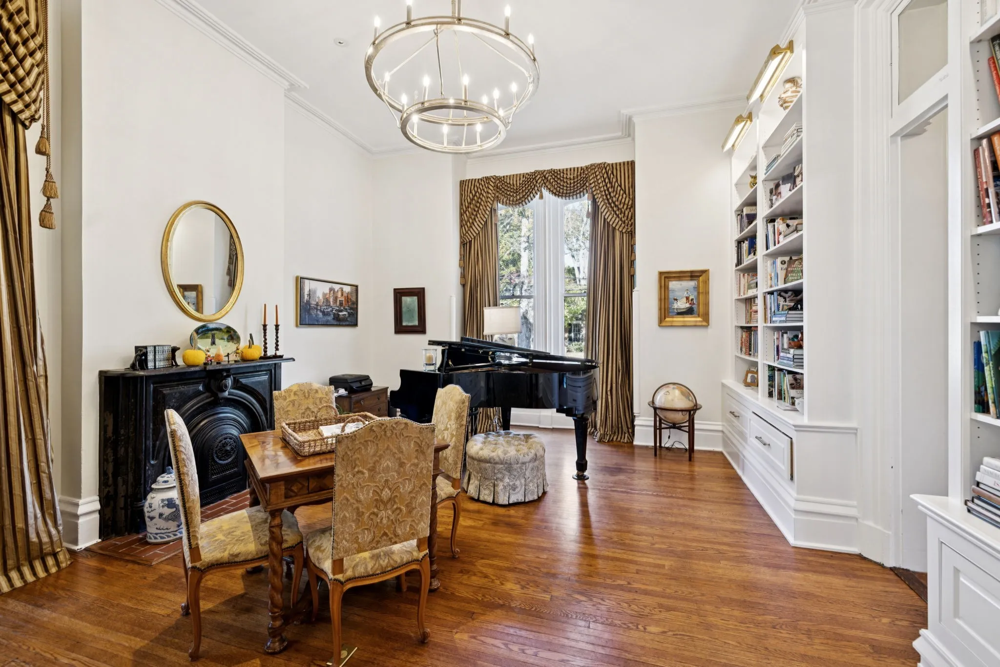 "LongDescription" => "A striking example of Second French Empire French Victorian architecture, the home is distinguished by its mansard roof, segmental arched openings, bracketed eaves with pavilions, central tower, and an extraordinary cornice."