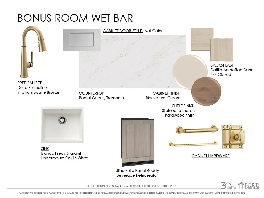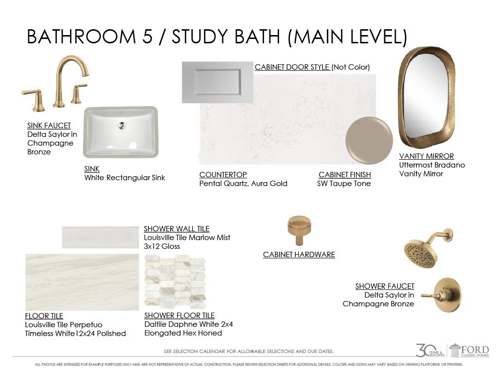 New~ Ford Classic Homes, Julianne~ Lovely Tudor in Brick~ Full covered porch entry~ Primary Suite, Guest/Study on 1st floor~ Separate Formal dining~ Beautiful Island kitchen w/ breakfast nook~ Open Great Room w/ coffer ceiling and built-ins~ Sliding glass doors open to covered porch w/ fireplace~ 2nd floor bonus room w/ walk out terrace~ 3 secondary beds, all w/ private baths~ 18′ x 21′ finished expansion room~ walk-in attic storage. 3-car Tandem Garage.