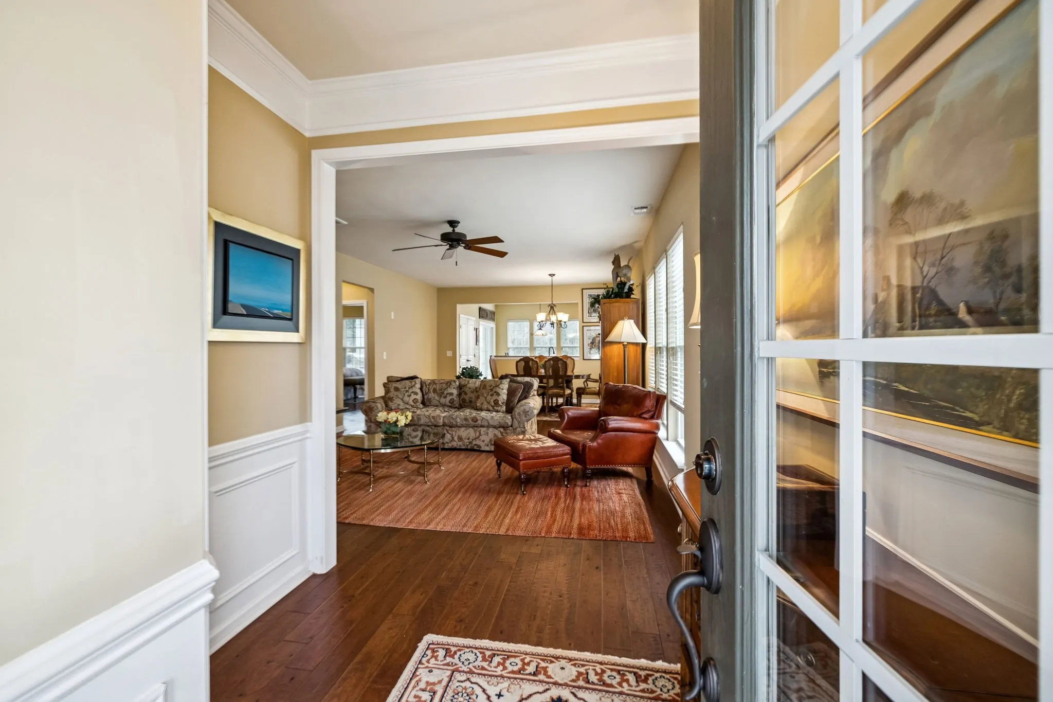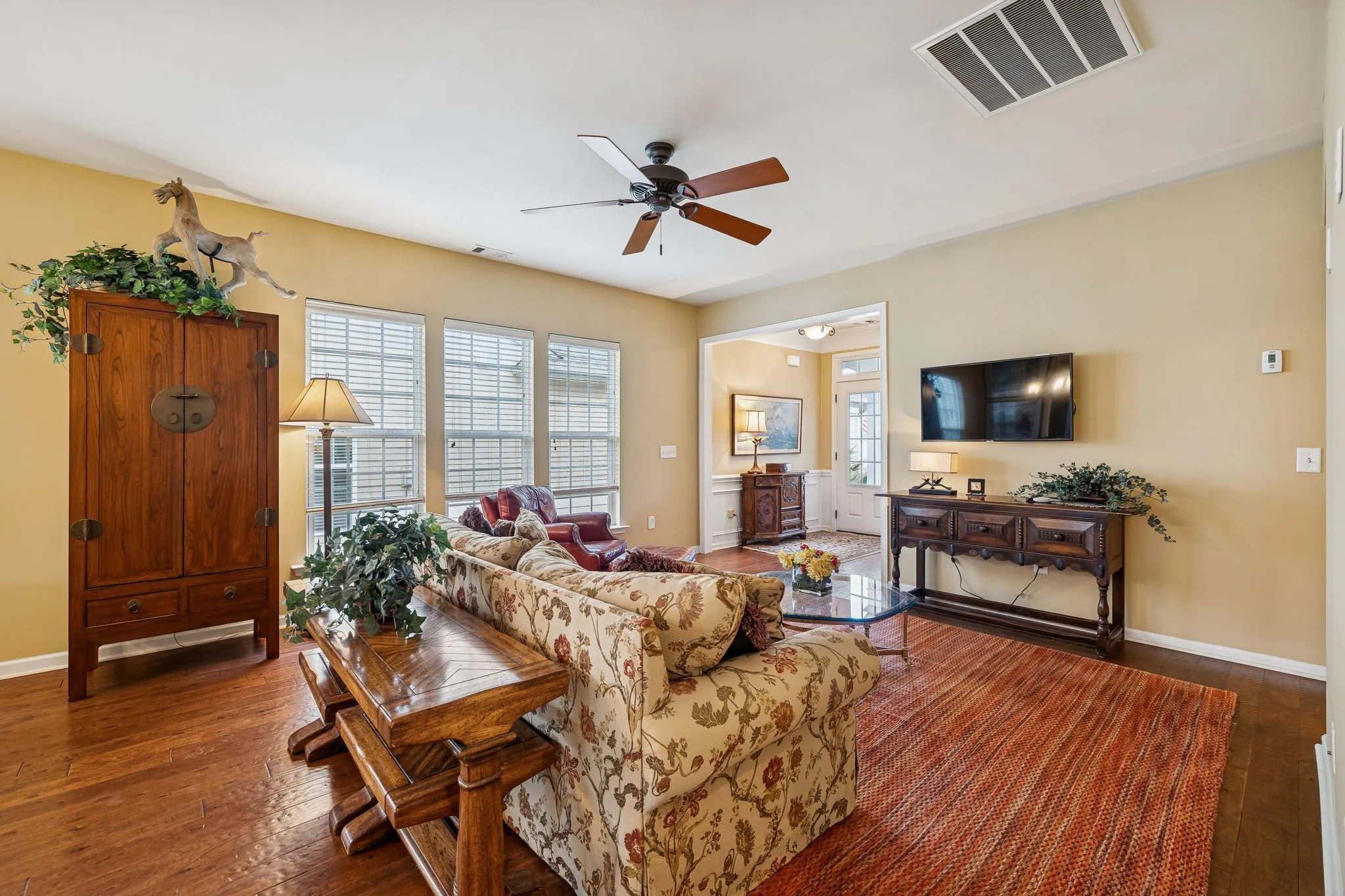 Welcome home to resort-style living in the premier gated 55+ community of Del Webb Lake Providence in Mt. Juliet! This beautifully maintained Pine Spring floorplan home combines comfort, privacy, and upgrades, including updated hardwood flooring, tile kitchen floors, glass shower doors, and granite kitchen countertops.\n