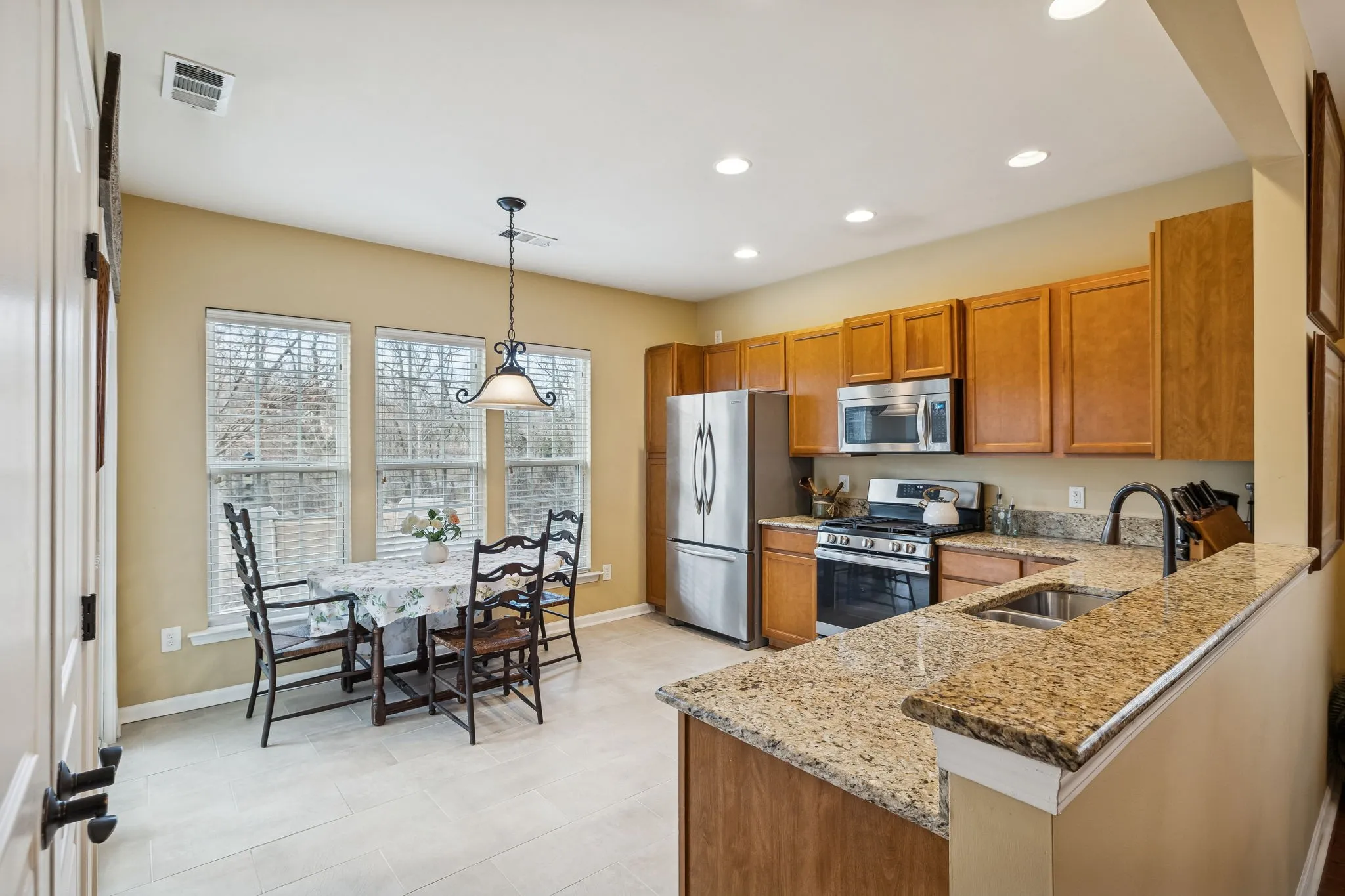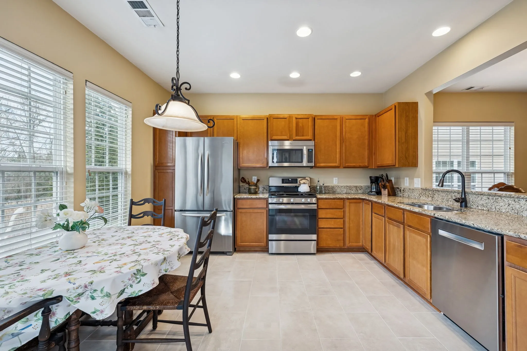 The home comes with all stainless steel appliances including gas range and sleek refrigerator. The washer and dryer also stay, so this one is truly move-in ready.\n