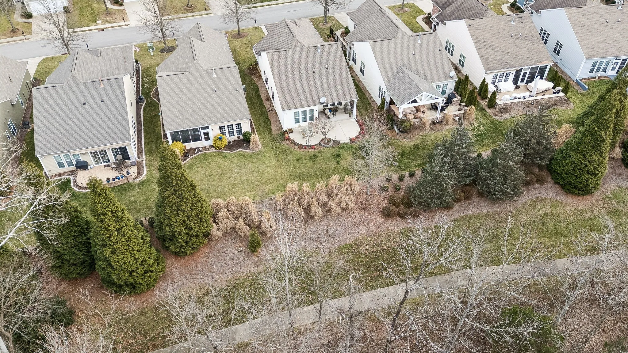 Step outside and discover the true standout feature: a rare private backyard setting that backs up to peaceful woods, meaning no rear neighbors and no looking into windows behind you. Enjoy relaxing or entertaining on the expansive patio with both covered and uncovered areas, offering the perfect mix of shade and sunshine. A scenic paved walking trail runs behind the home, yet remains out of sight due to the home’s elevation, giving you the feeling of your own secluded retreat.\n