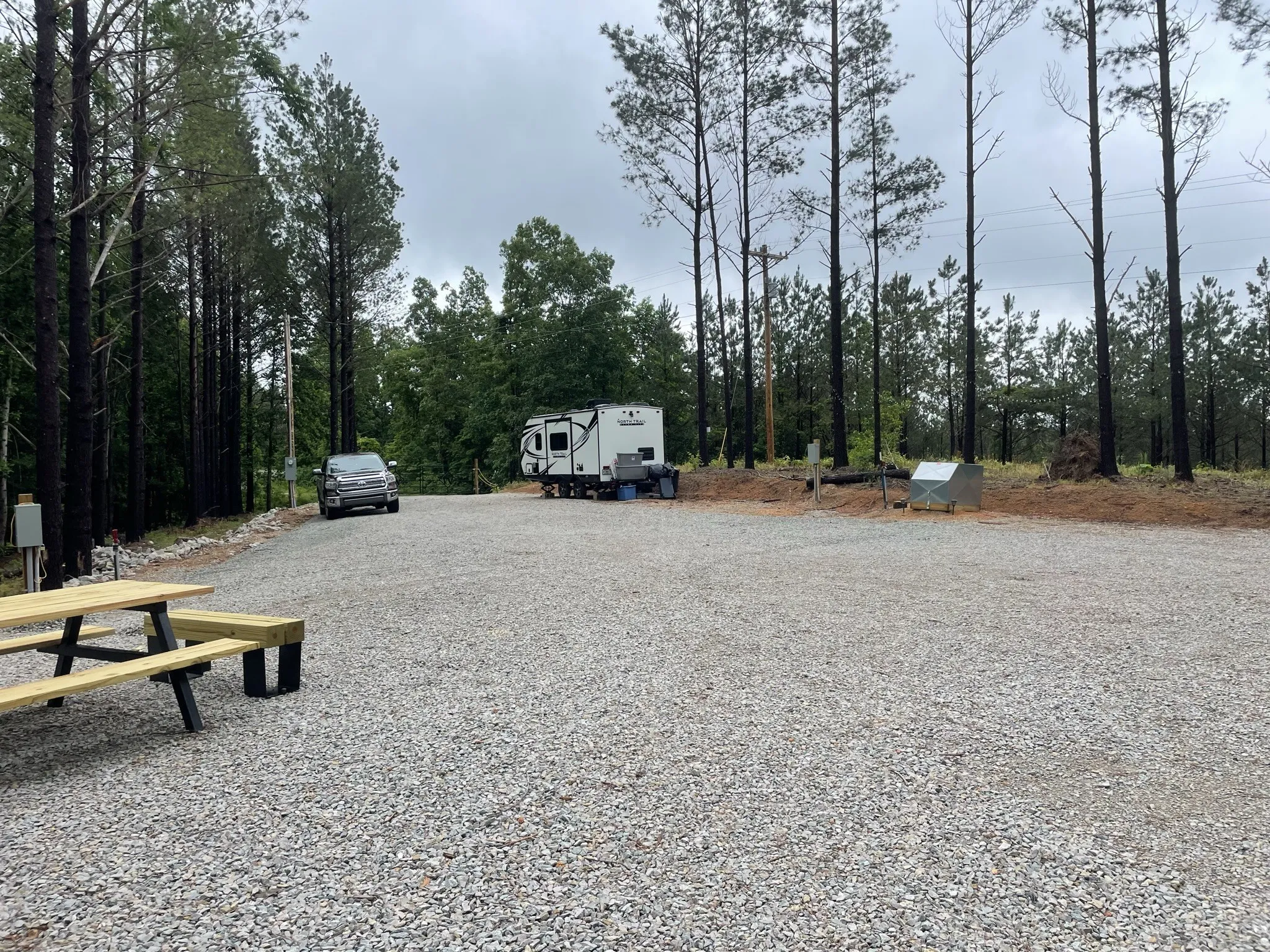 Enter through custom iron gates into a thoughtfully developed space that includes three RV pads—two with full hookups (water, septic, electric) and a third with water and electric. The layout makes it ideal for hosting guests, renting RV sites, or setting up a private family compound.