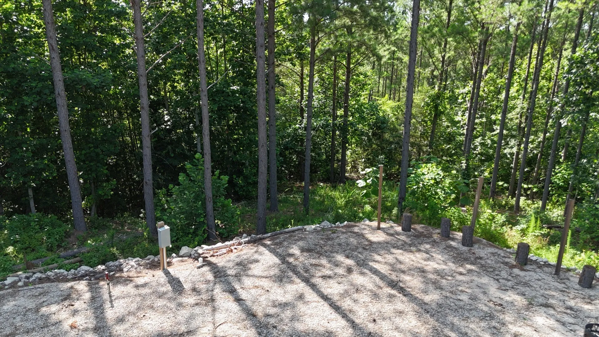 A year-round, spring-fed creek runs near the back of the property, providing a peaceful setting and a touch of natural beauty. The lot also features a fire pit area, benches, and picnic table (note: these furnishings are not included but give you an idea of the lifestyle this property supports).