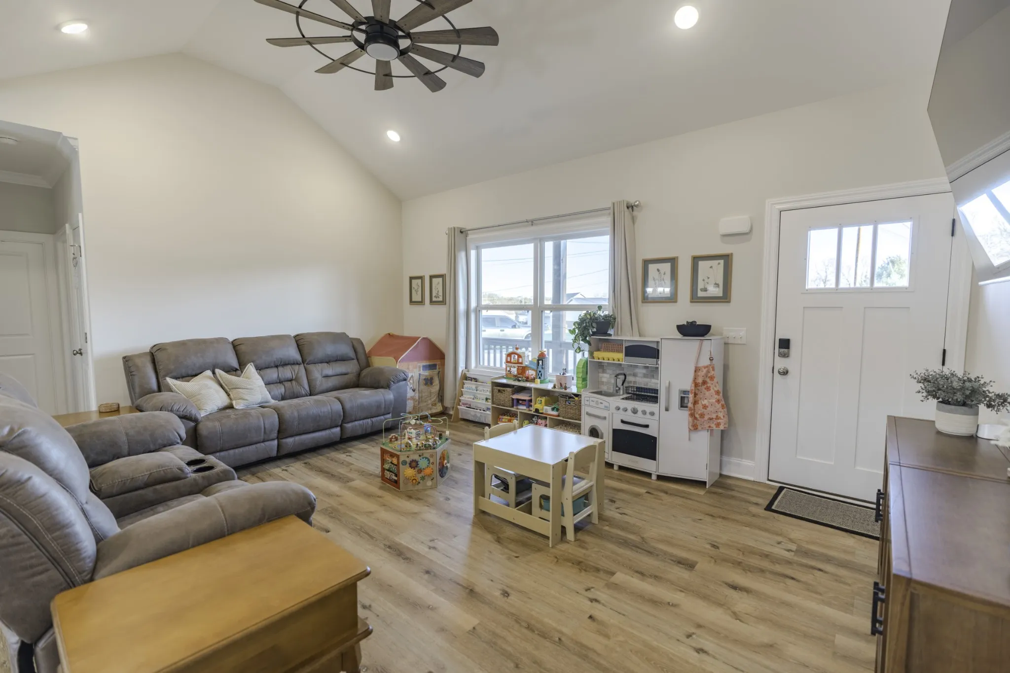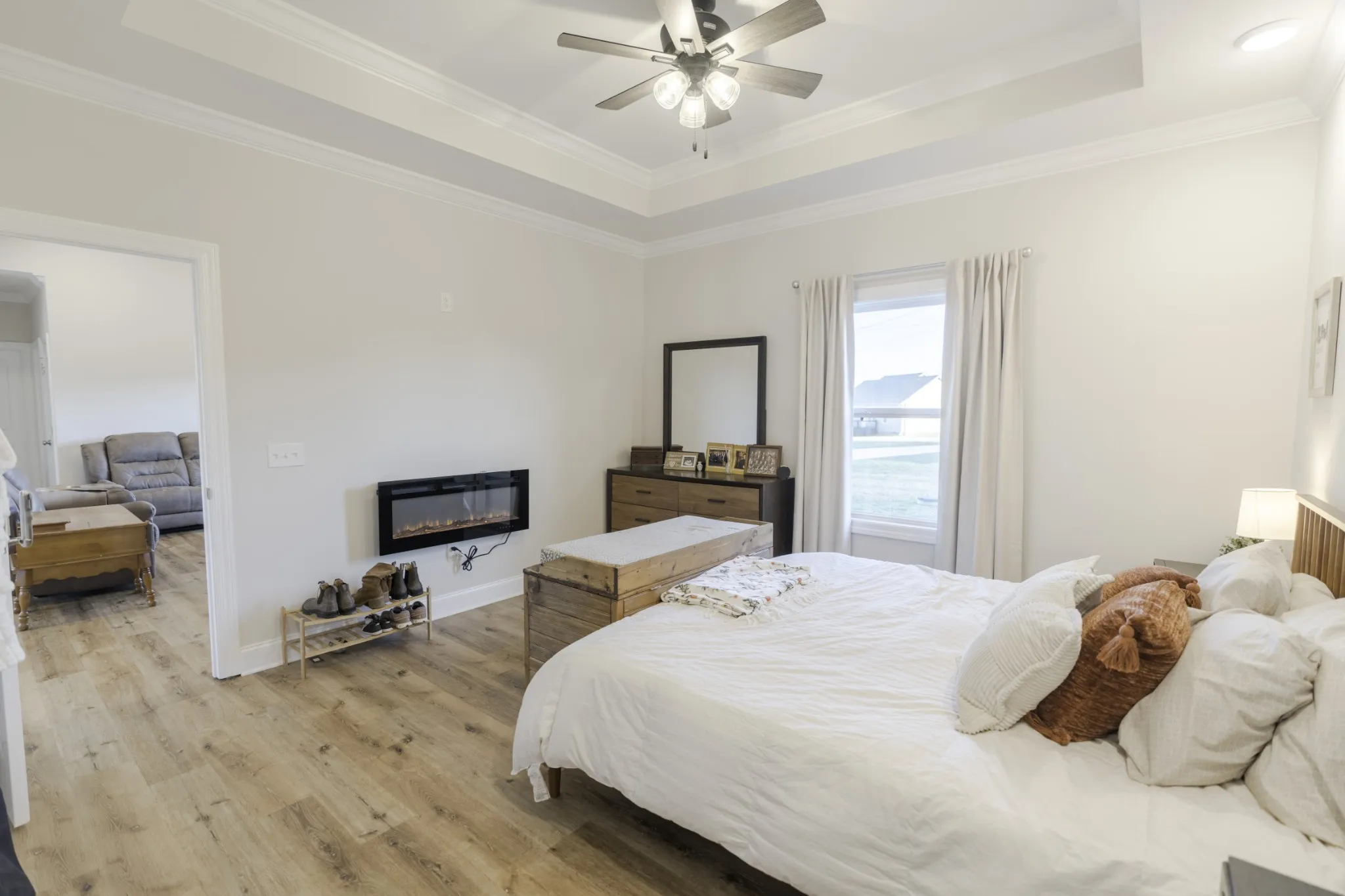 Built in December 2024, this modern and cozy 3-bedroom, 2-bathroom home features an open floor plan seamlessly connecting the living room, dining area, and kitchen, perfect for everyday living and entertaining. The kitchen offers a built-in pantry with a dedicated dog crate, adding both function and charm. The primary bedroom serves as a relaxing retreat with an electric fireplace for added warmth and ambiance. Enjoy outdoor living in the fully fenced yard and take advantage of the brand-new shed for additional storage. Ideally located for a serene commute to Brentwood, Franklin, and Murfreesboro. Owner/agent—selling due to job relocation. Move-in ready and thoughtfully designed throughout.