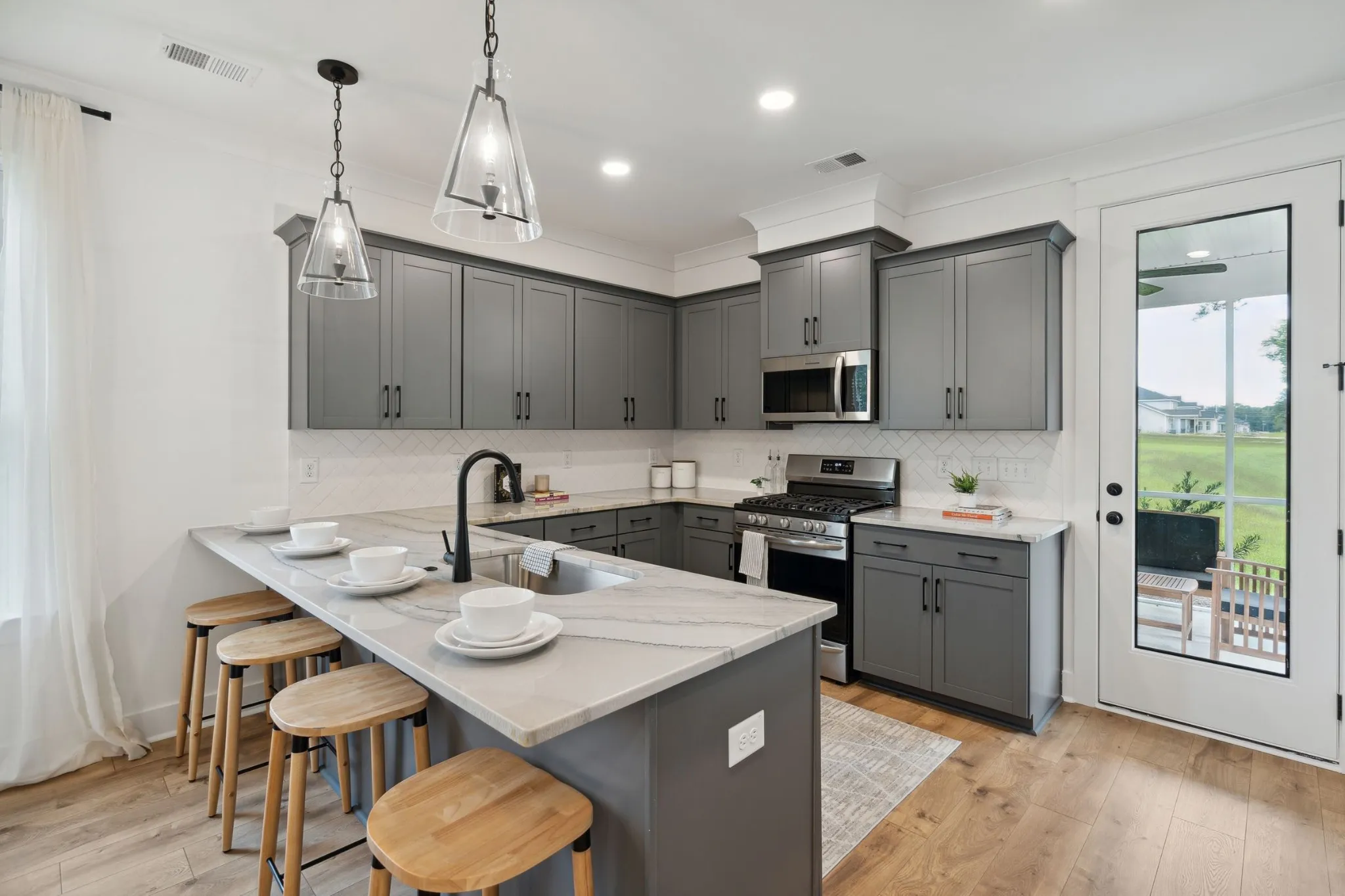 This home is enhanced with a rear patio for outdoor living, an upgraded front door, gourmet kitchen with wood hood that vents out, wood staircase with wood balusters, wood flooring in the primary bedroom, quartz countertops in your kitchen and all baths, a tiled shower in the primary bathroom, additional LED lighting throughout the home, gas, and a 2 car garage with a 4 car driveway. This home breaks ground in two weeks, photos are of a previously built Hadley.
