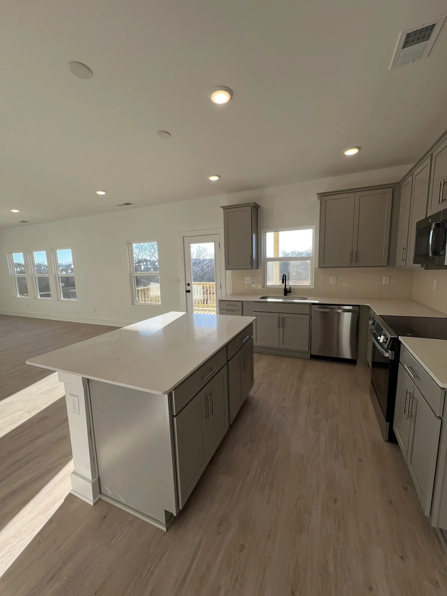 The gorgeous Madison floorplan shines with high-end luxury: soaring 9ft ceilings on the main level for an airy, spacious feel, plank flooring, craftsman-style trim, 42-inch upper cabinets, quartz countertops in kitchen/baths, stylish hardware, tiled master shower with frameless door, and expansive covered rear deck.\n
