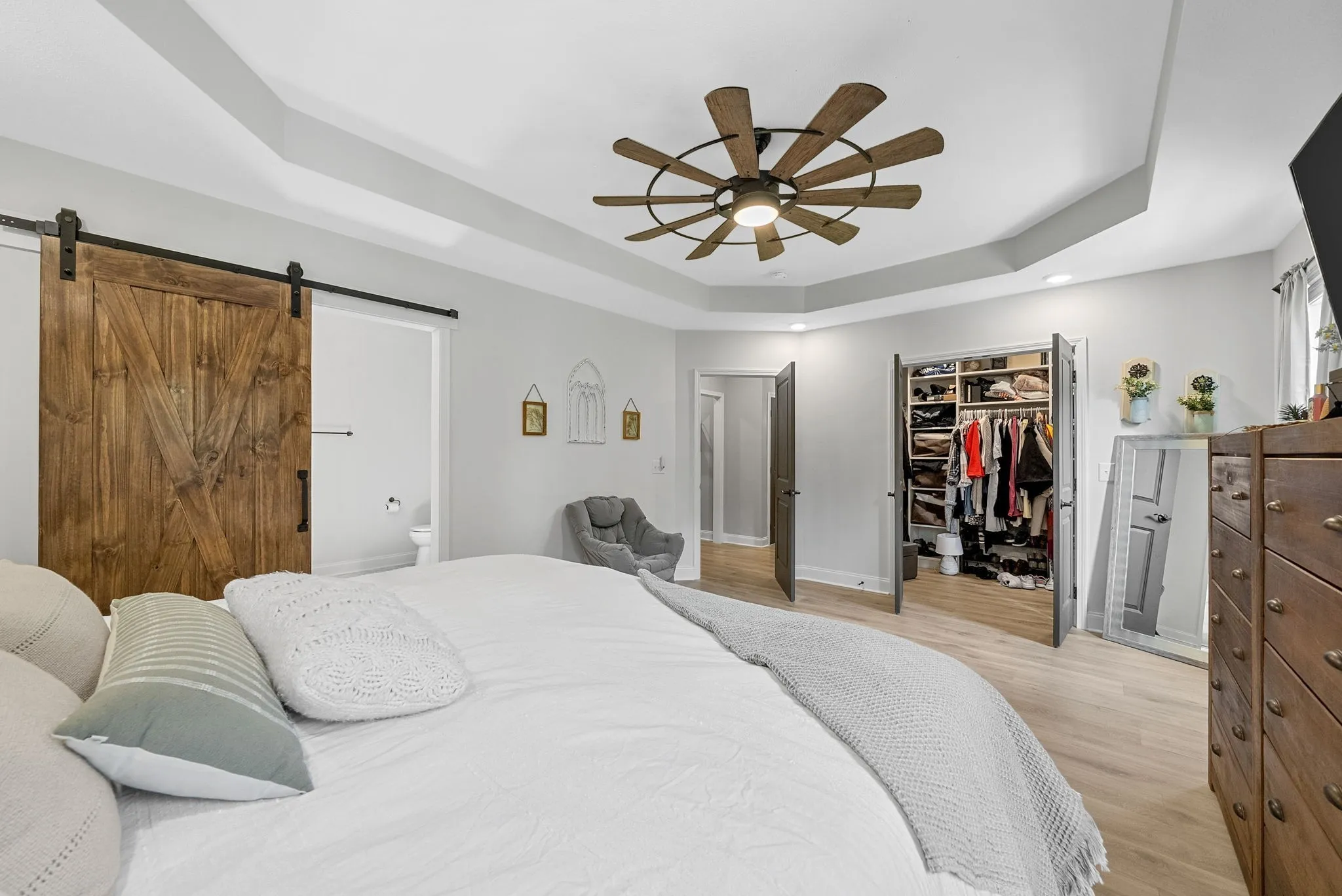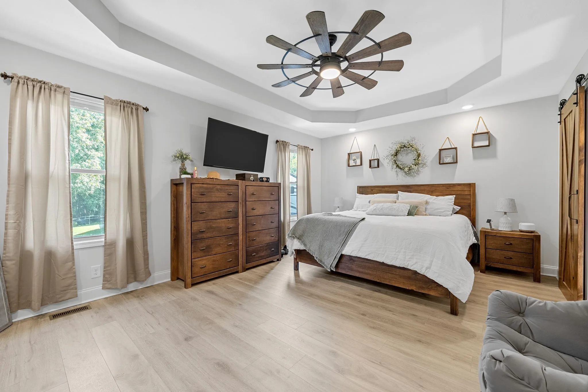 SELLER TO PROVIDE $27,000 IN CONCESSIONS! + $6,899 PREFERRED LENDER CREDIT! Experience peaceful country luxury just 20–25 minutes from Downtown Clarksville and 50 mins to Nashville! NO HOA and NO CITY TAXES! Motivated sellers are offering an incredible opportunity on this stunning 2.74-acre private estate! The gorgeous acreage is ideal for those wanting room to roam, garden, or enjoy animals, and is zoned for livestock, perfect for hobby farming or creating your dream homestead. The property also features a stocked pond for fishing, a charming chicken coop with chickens, mature trees, open green space, and a gated pathway leading to your own private creek, creating a serene retreat right in your backyard. Inside, the home is equally impressive. The main living area welcomes you with vaulted ceilings, a dramatic stone fireplace, beautiful flooring, and elegant illuminated stairwell details. The spacious eat-in kitchen is designed for both function and style with custom cabinetry, quartz countertops, a pantry, and plenty of room to gather. The main-level primary suite offers comfort and privacy with a large walk-in closet and spa-like en suite featuring double vanities, linen storage, and a beautifully tiled custom shower. Upstairs, you’ll find two oversized bedrooms with generous closets, plus a second primary suite complete with a huge walk-in closet and private full bath. Additional upstairs linen closets provide abundant storage. The massive bonus room can easily serve as a fifth bedroom, home office, gym, media room, or playroom. Modern convenience continues with remote-controlled ceiling fans throughout. The outdoor living possibilities are endless with a covered patio, detached garage/workshop, room for future additions, and breathtaking views of your own land. Flood insurance not required. Pond has never flooded with engineered runoff drainage directing overflow to the creek.