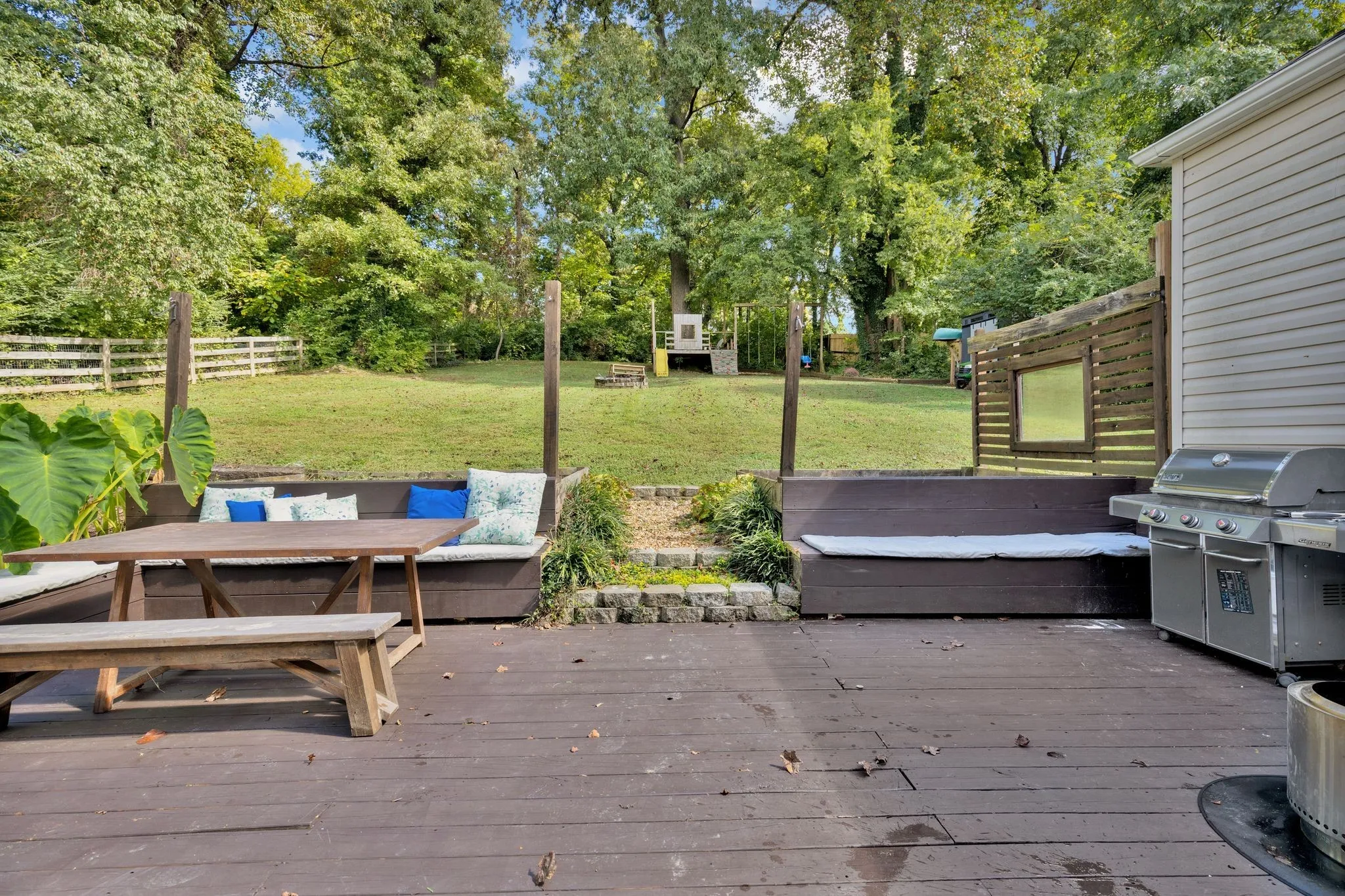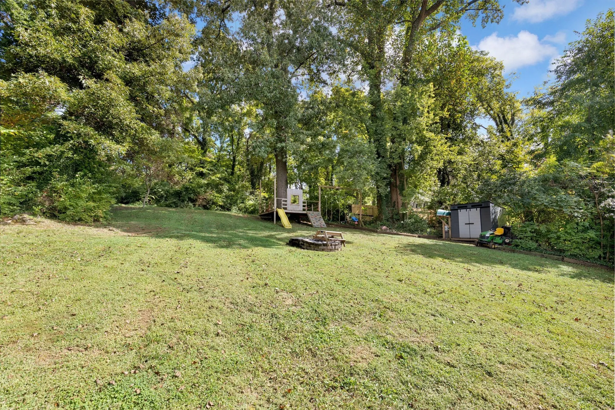 The outdoor space is truly incredible, complete with a large deck for relaxing and entertaining. Just off the deck is a private backyard, fully fenced with mature trees, a custom play set that remains, a storage shed, and a cozy firepit for evenings under the stars.