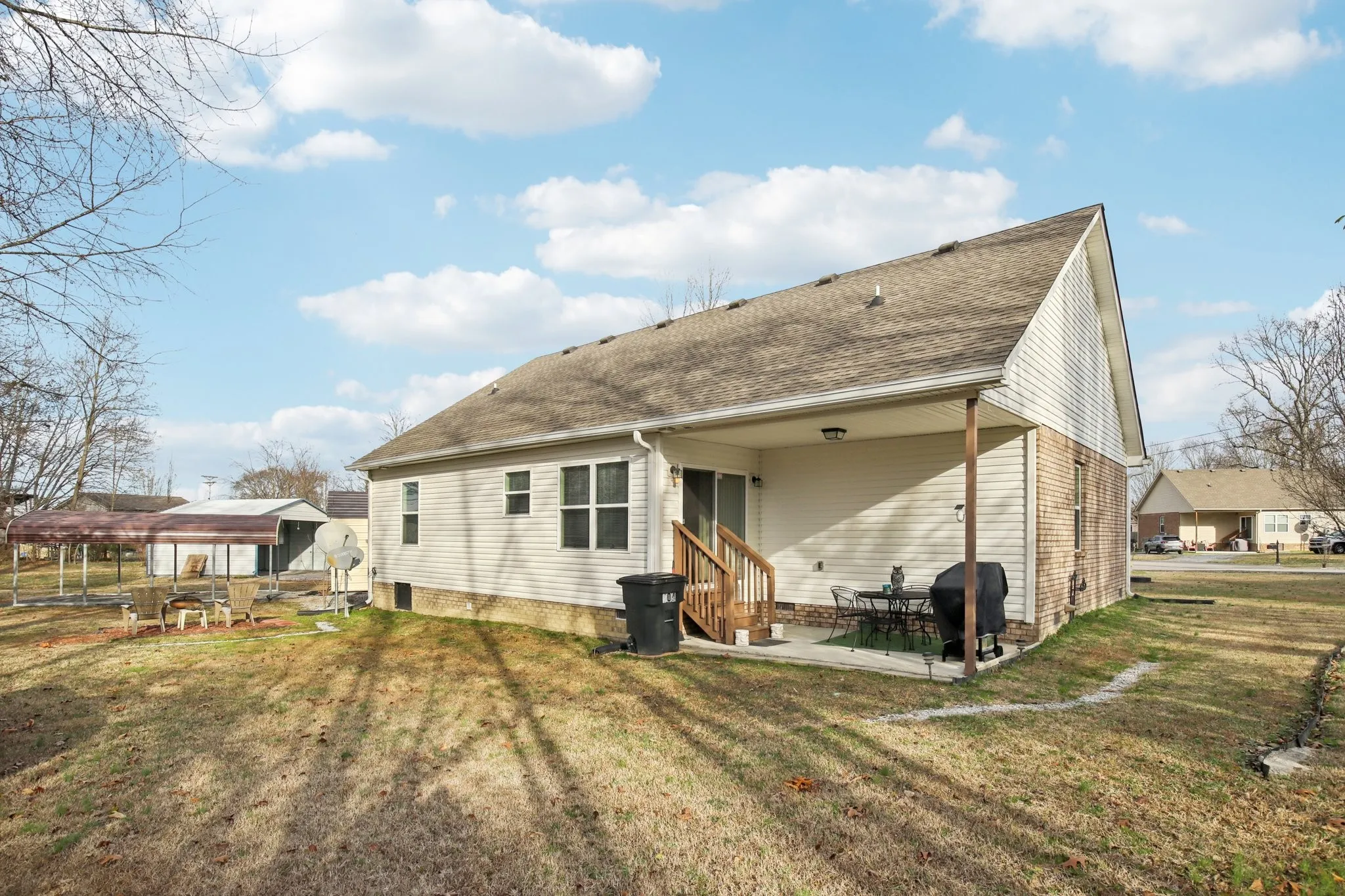 Outside, enjoy a covered back patio overlooking a manageable yard ideal for morning coffee, grilling season, or simply enjoying Tennessee evenings without extra maintenance.