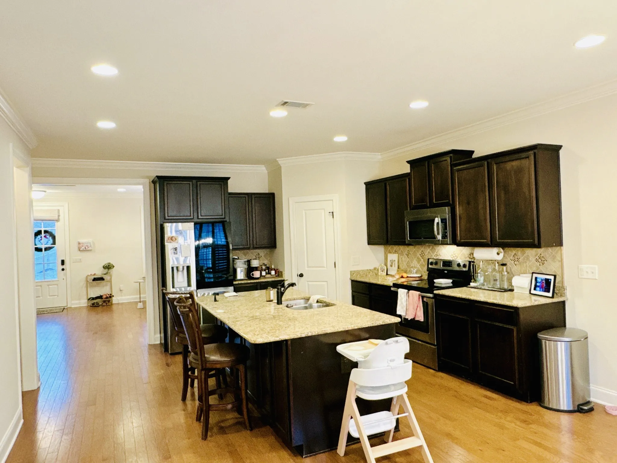 NEW PICTURES COMING SOON/Updated LVP throughout upstairs and new carpet in downstairs media room. Captivating Contemporary Townhome in a fantastic location. Close to downtown Franklin & Brentwood! This cozy residence is located in the sought-after Gateway Village neighborhood, known for its tree-lined streets, manicured lawns, and walkable community. You are just a short stroll to Herban Market, The Flower Kitchen, Sweat Shack and much more! Fresh paint throughout & Hardwoods on the main, Plantation Shutters throughout, Upscale Kitchen/Granite & SS Appliances open to Great Room; private Rear Entrance with 2-car Car Garage, Minutes to I-65. Room in the basement was used as a theater room. It can be used as a 4th bedroom/rec room.