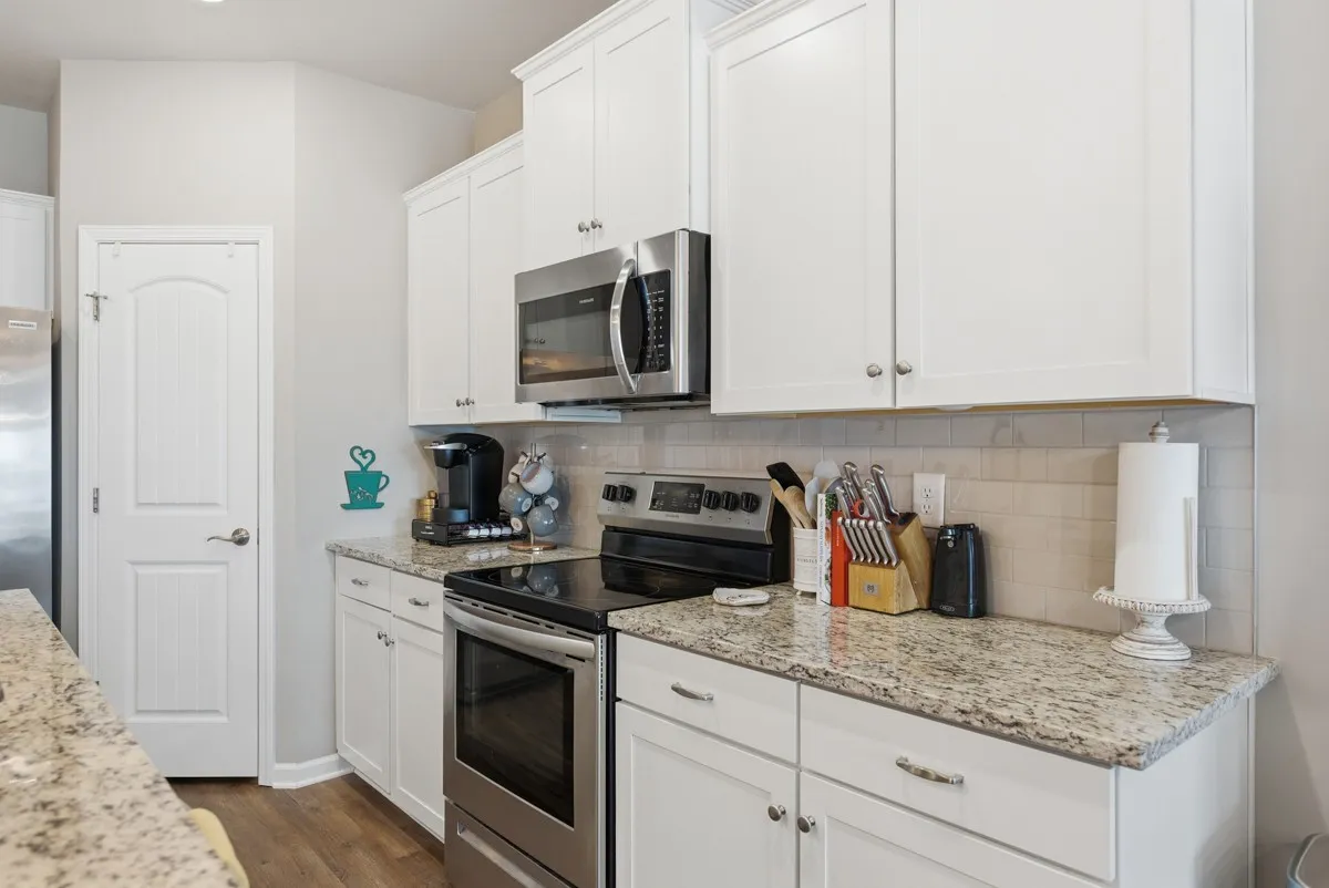 The open-concept main level features durable LVP flooring throughout the main living areas, a spacious kitchen with granite countertops, ample pantry space, and seamless flow into the living and dining areas. The main-level bedroom with full bath and large garden tub is a master suite!