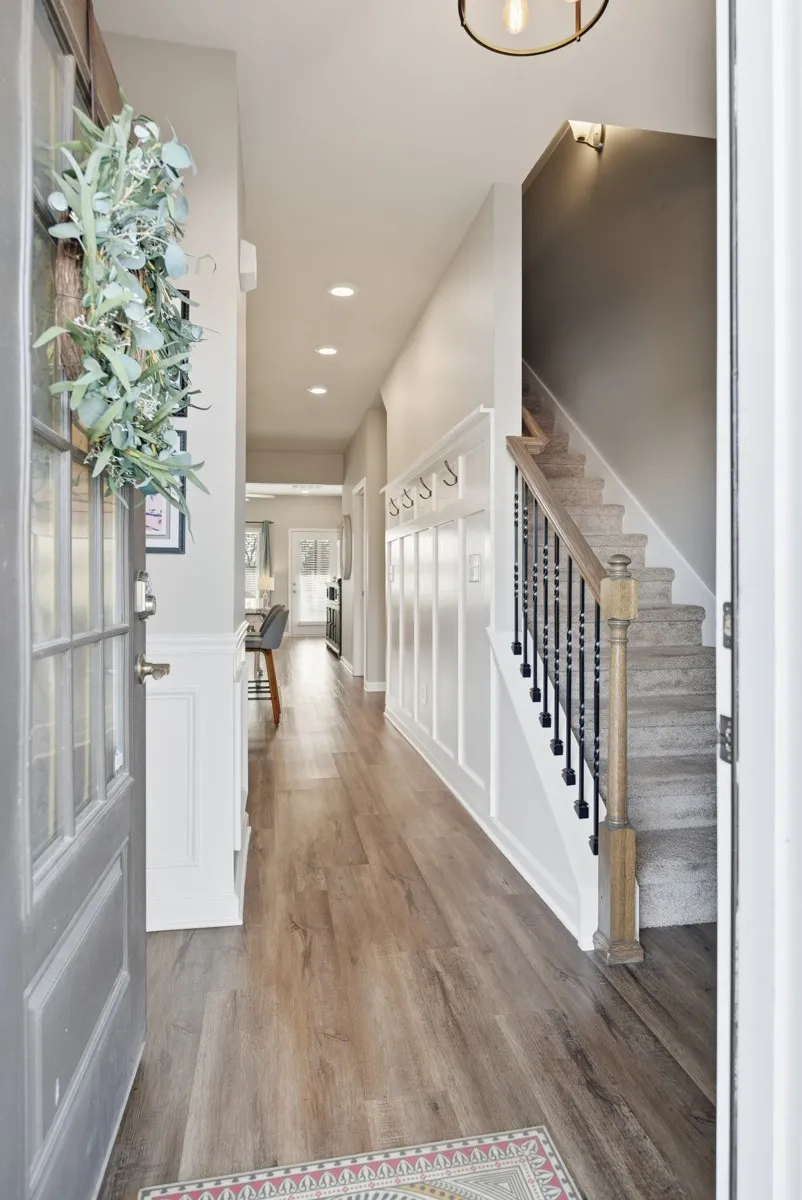 This well-maintained Foxland Crossing 3-bedroom, 2.5 bath townhome with spacious bonus room, private back yard, 1-car garage with built in overhead storage delivers low-maintenance living and everyday convenience. Bright open entrance with added wainscoting accent wall leading to kitchen.