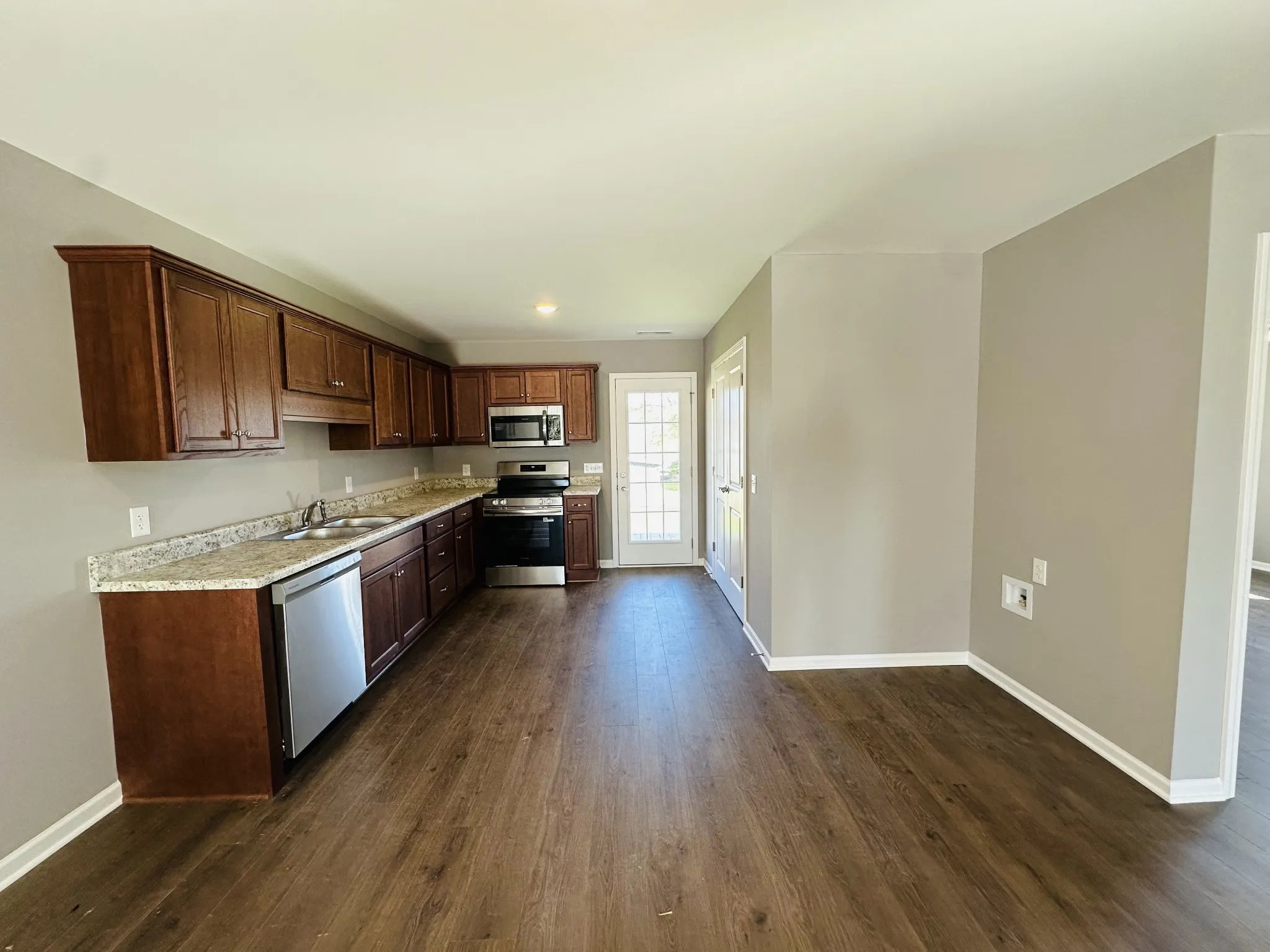 Brand new duplex featuring open floor plan, great room, kitchen w/stove, dishwasher, refrigerator and microwave, 2 bedrooms, full bath, laminate flooring, covered front porch, deck, and concrete driveway. 926 Trail St & 928 Trail St. 850 sq ft per side. Would make excellent investment property.