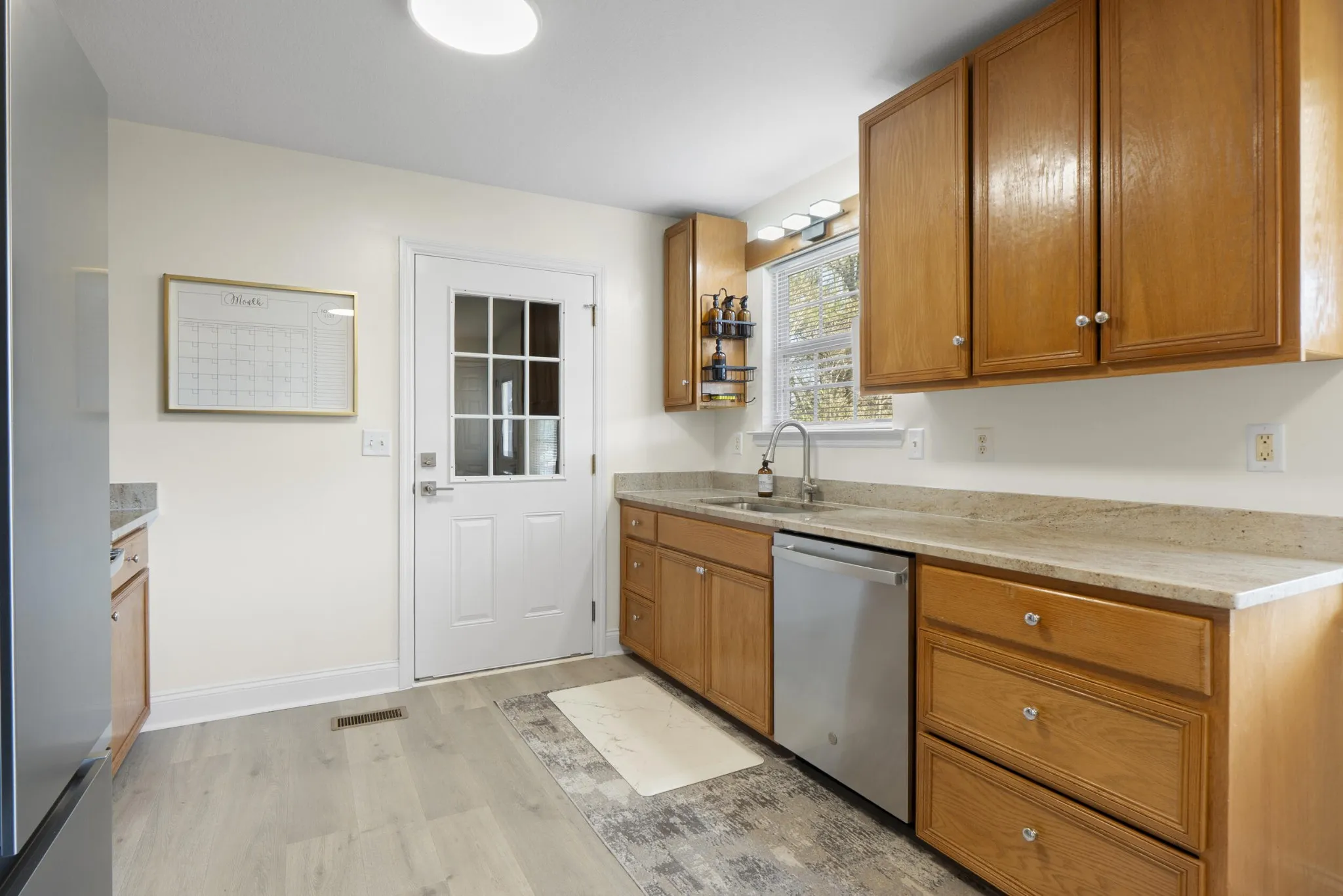 Constructed in 2008 and meticulously updated, this single-level ranch home features three bedrooms and two bathrooms, designed for effortless living. The light-filled living area seamlessly flows into an eat-in kitchen, which boasts granite countertops, stainless steel appliances, and ample space for gatherings. The interior is adorned with luxury vinyl plank and tile flooring, along with modern lighting and plumbing fixtures, creating a clean and sophisticated ambiance.