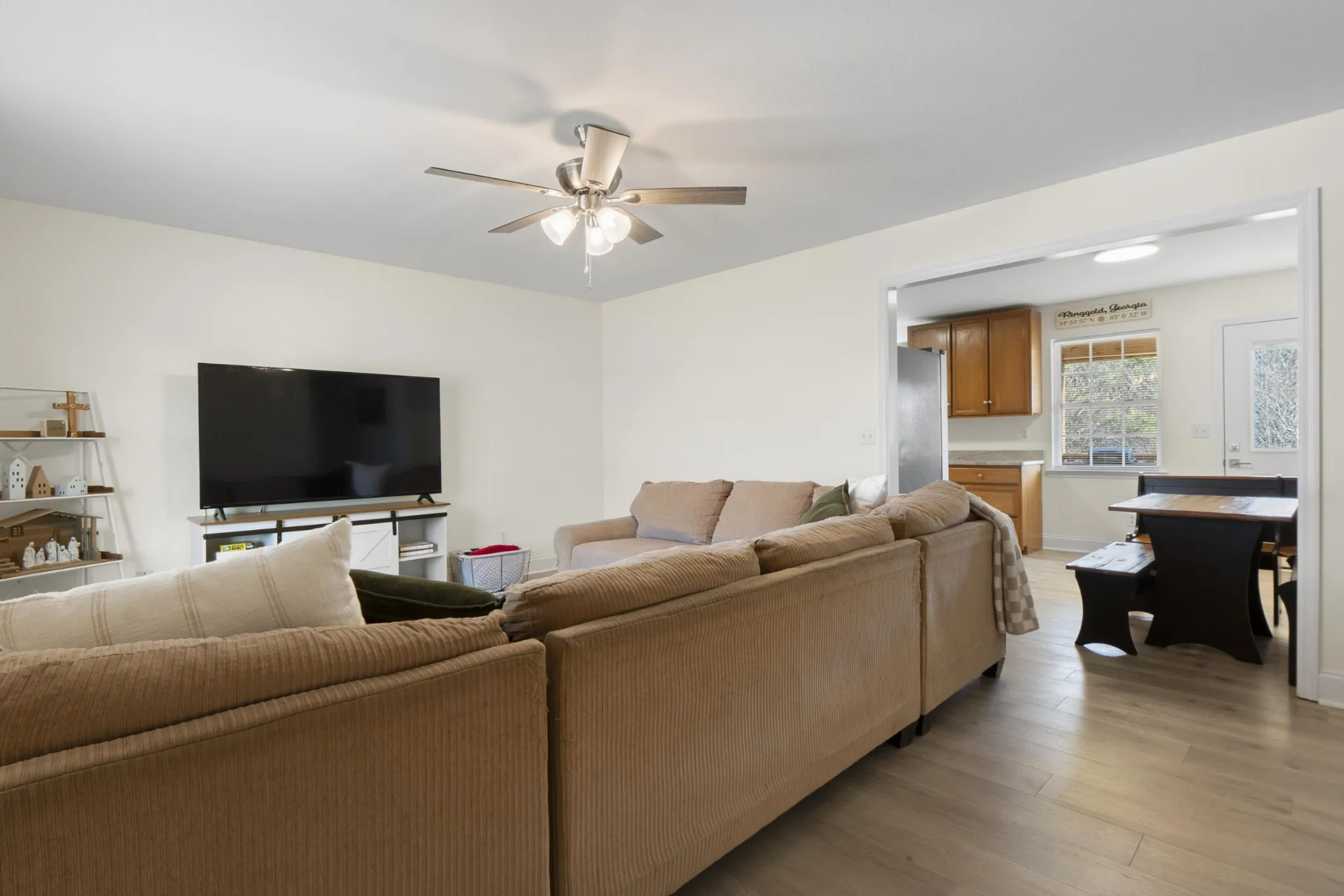 The primary suite offers a private retreat with its own ensuite bathroom and granite-topped vanity. Two additional bedrooms provide plenty of closet space, while the dedicated utility room is tucked away to provide a convenient interior connection to the single-car garage. Outside, the covered deck overlooks a level, private backyard that feels worlds away from the city. This property offers the perfect balance of country tranquility and convenience, located just minutes from downtown Ringgold, Chattanooga, and I-75.