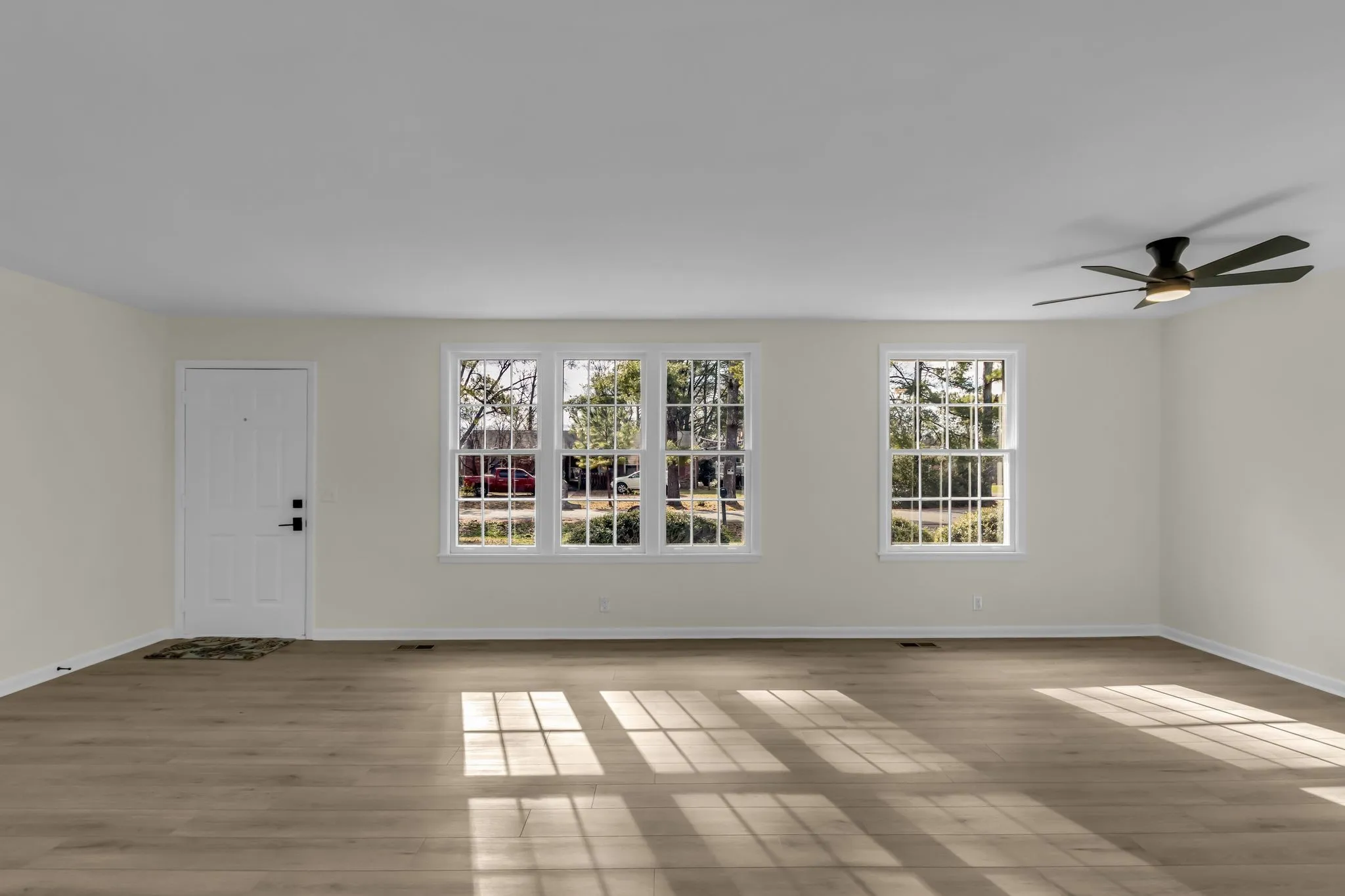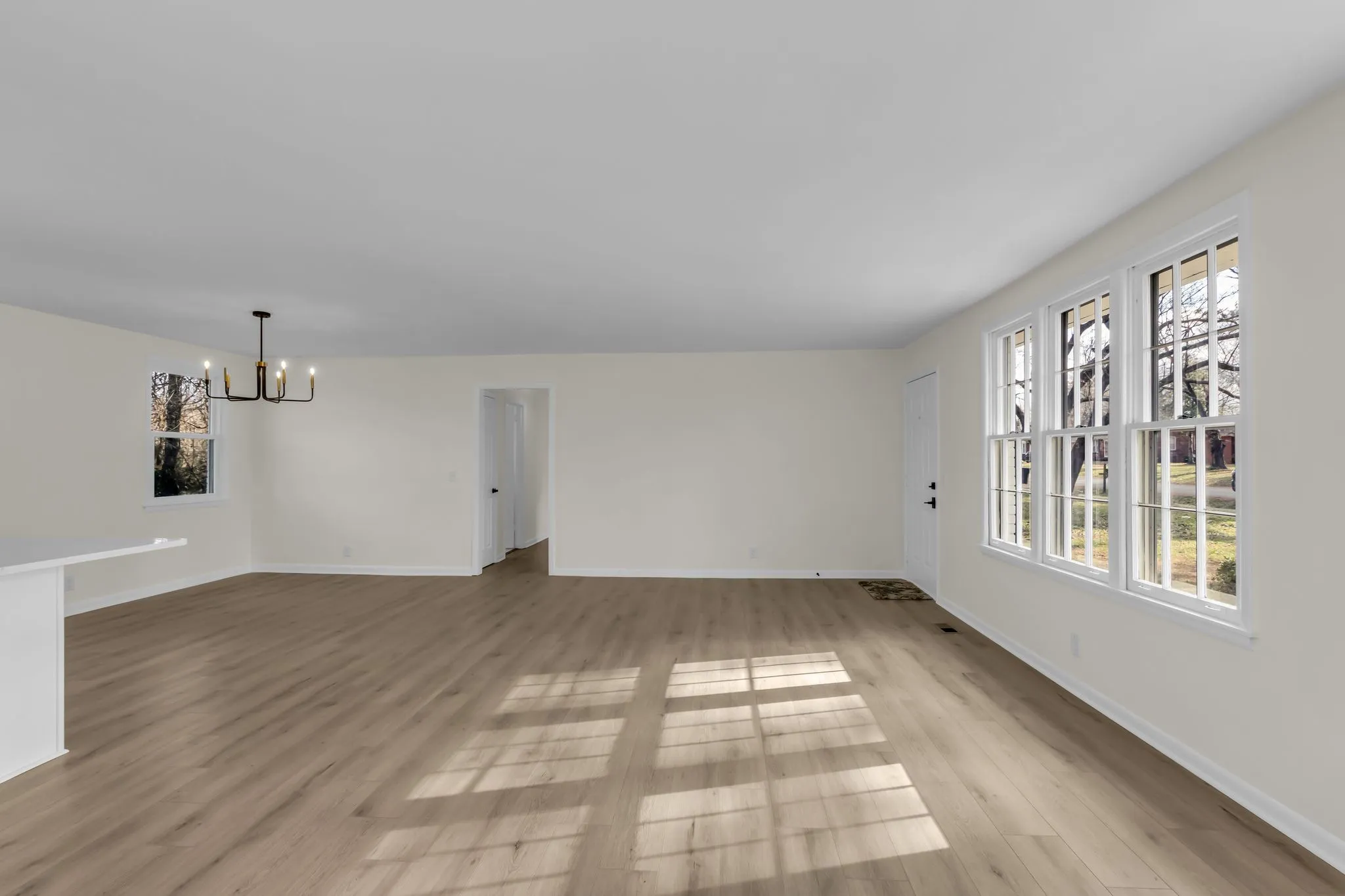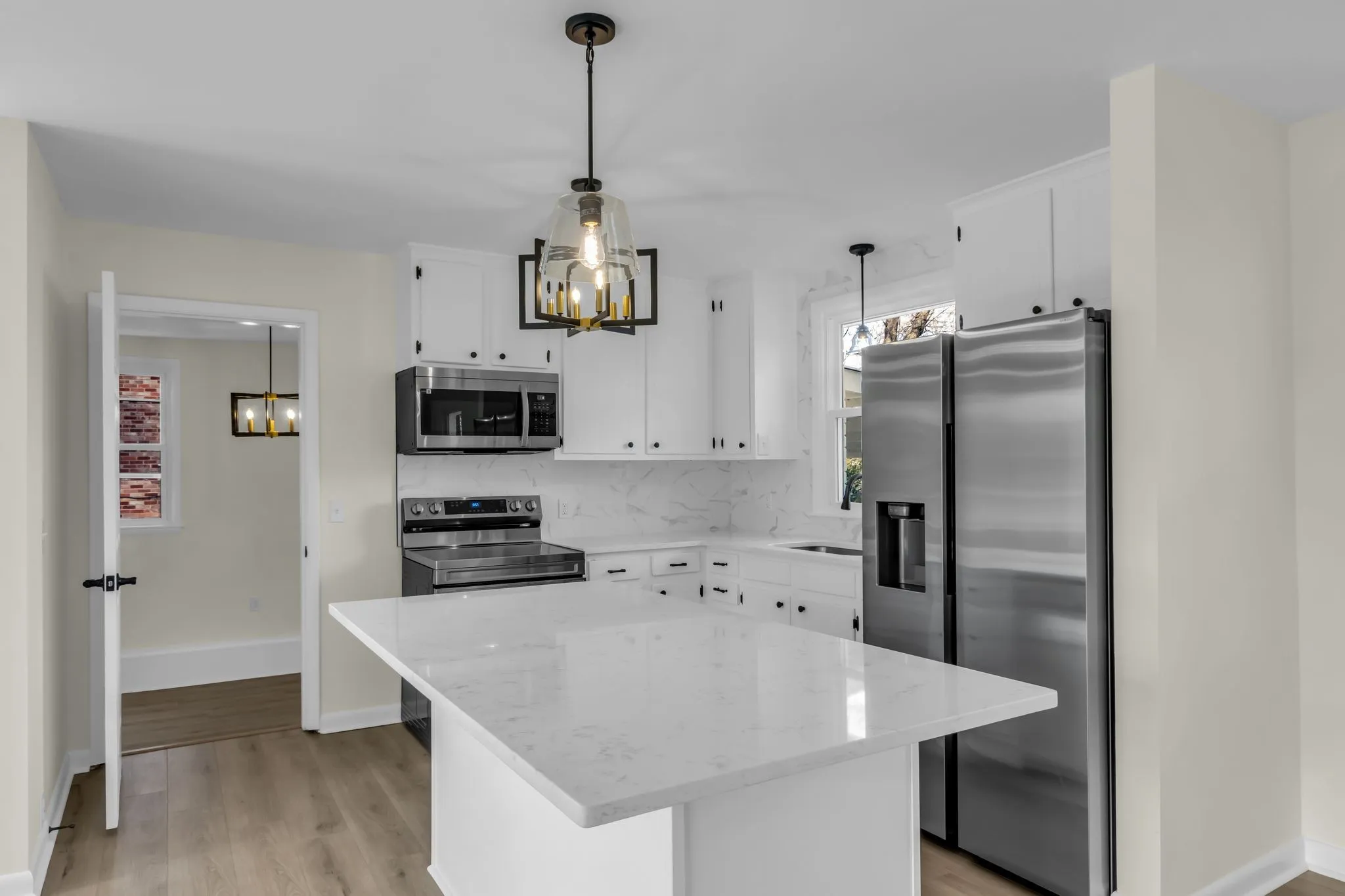 Lovely renovation with all new: paint in/out, flooring, light fixtures, appliances, quartz counter top and backsplash, both bathrooms fully rehabbed with new tile/vanities, open floor plan. New roof in 2018, water heater 2024, mostly all new replacement windows 2025. HVAC unit 2021. All brick with large flat lot. Publix about a mile away.