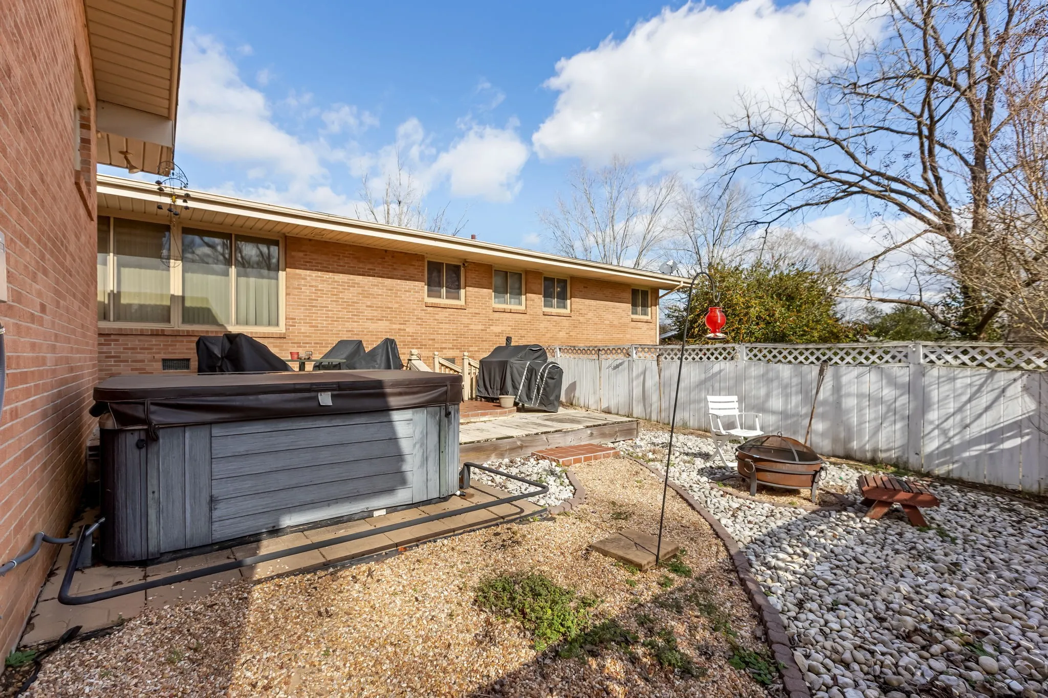 Out back, a private patio creates a quiet place to unwind, complete with a newer hot tub. The nearly one acre lot provides breathing room without the burden of excessive upkeep.