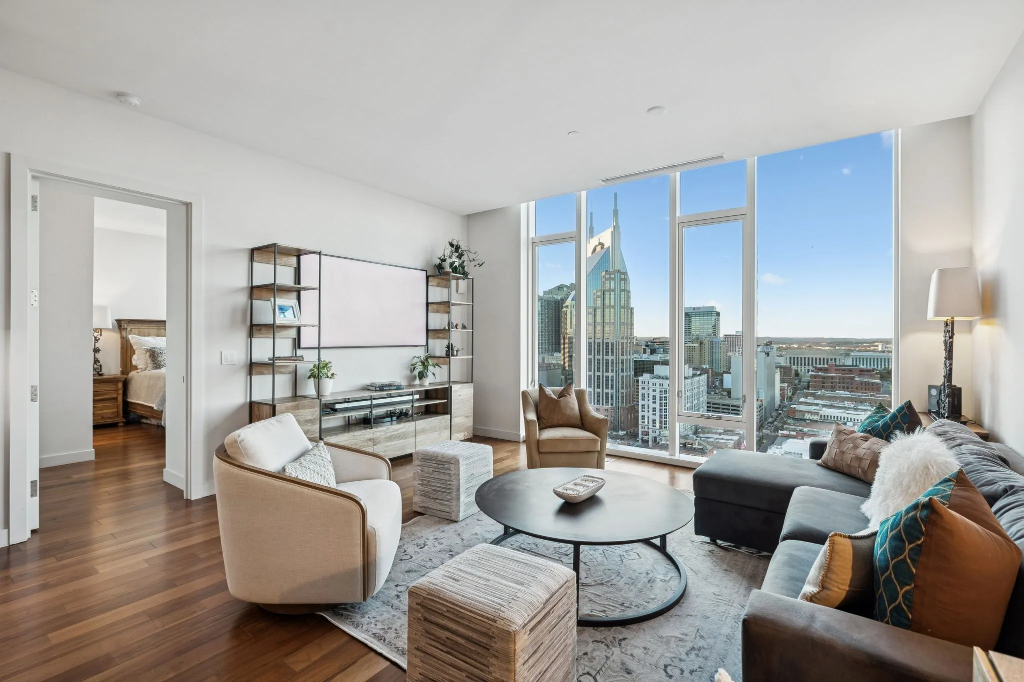Residents enjoy world-class amenities: a resort-style pool, full-service spa, state-of-the-art fitness center with yoga and training studios, sky deck and garden, private lounge, media room, and 24/7 security and concierge services. Dining, entertainment, and Nashville’s top venues are just steps from your door.